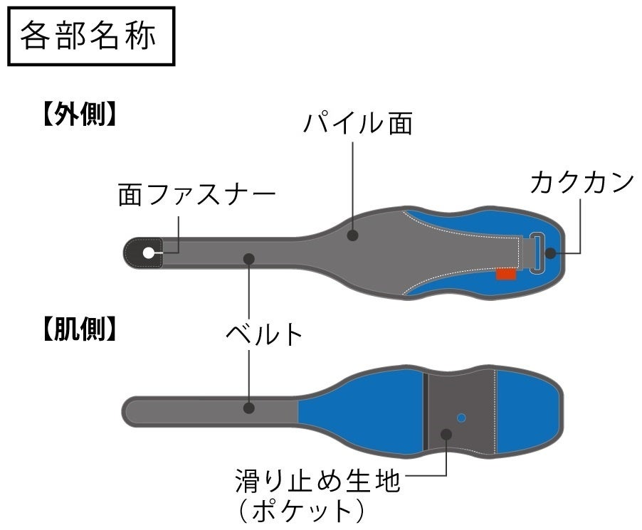 ① 肌側にセンサを入れるポケット付き