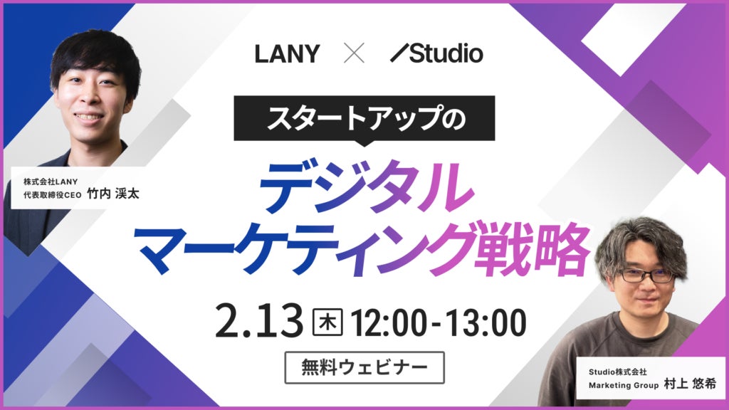 【無料共催ウェビナー】スタートアップのデジタルマーケティング戦略|LANY×Studio株式会社を2/13(木)に開催