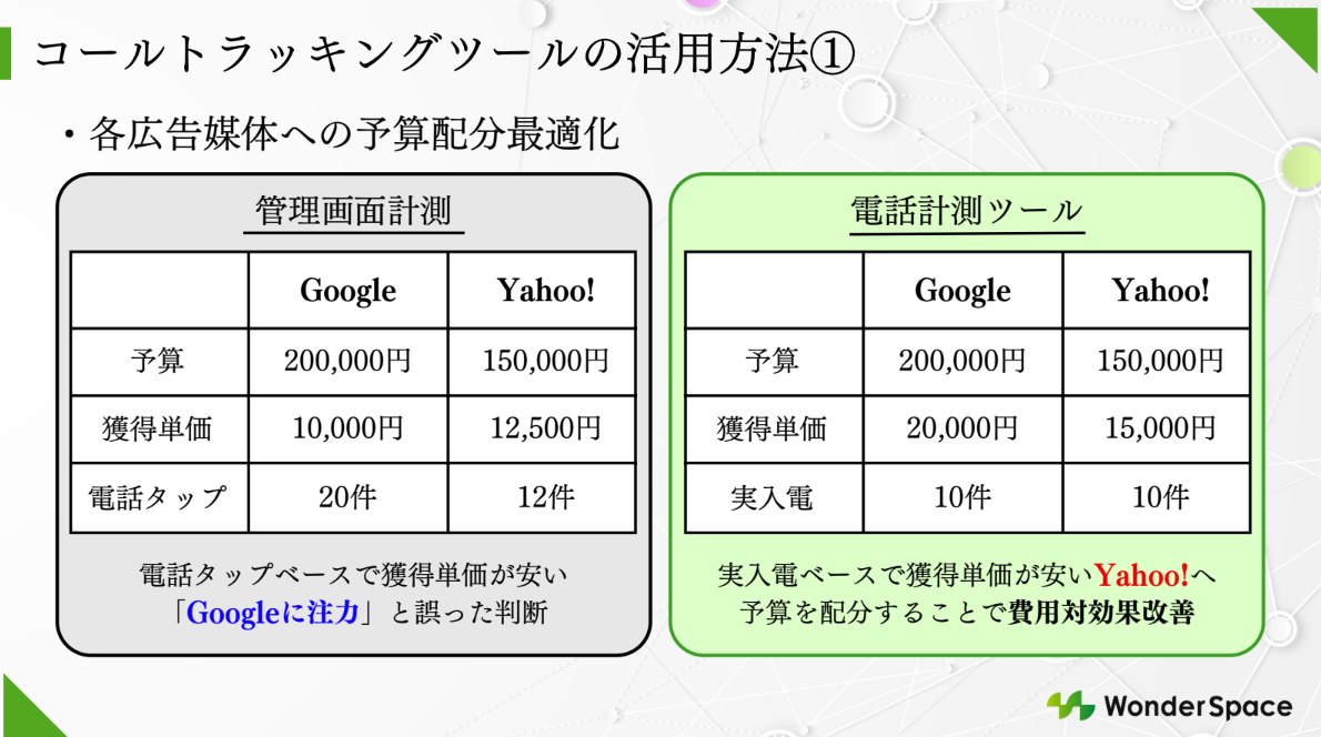 この問題を解決するため、広告配信においては「電話番号をタップした人」ではなく「実際に架電した人」に最適化をかけていくべきであり、そのためには、コールトラッキングツールの導入が不可欠です。