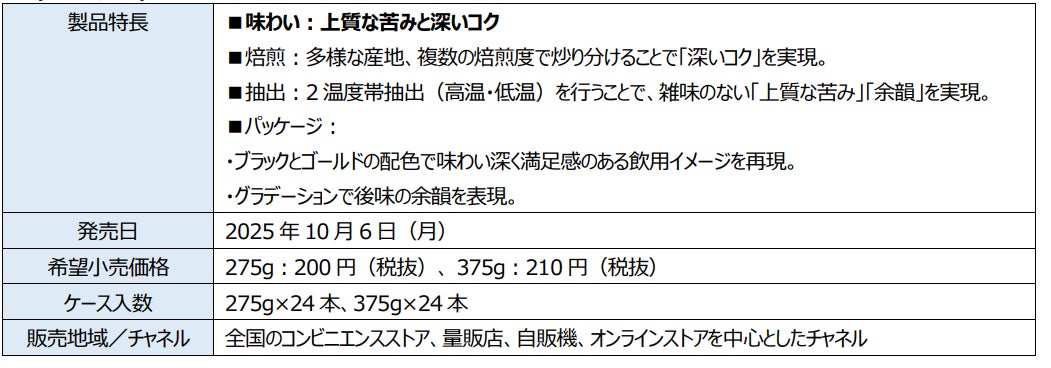 このたび、リキャップ缶コーヒーユーザーにとって「味や香りがおいしそうであること」が購入・飲用の選択基準になっていることに着目しました。類似製品にはない”余韻”を訴求軸とした『UCC BLACK無糖 黒の余韻 リキャップ缶275g』 と『同375g』を展開することで、ユーザーに新たな購入の選択肢をご提案いたします。