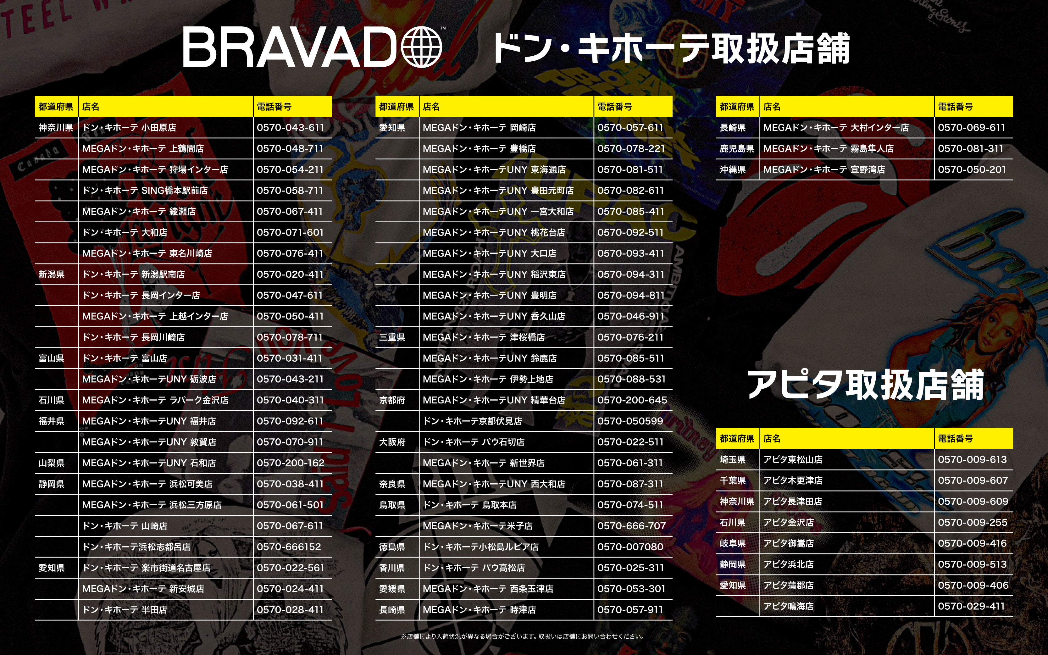 ドン・キホーテ、アピタ限定のBRAVADO アーティストのTシャツをこの機会にゲットしてください。