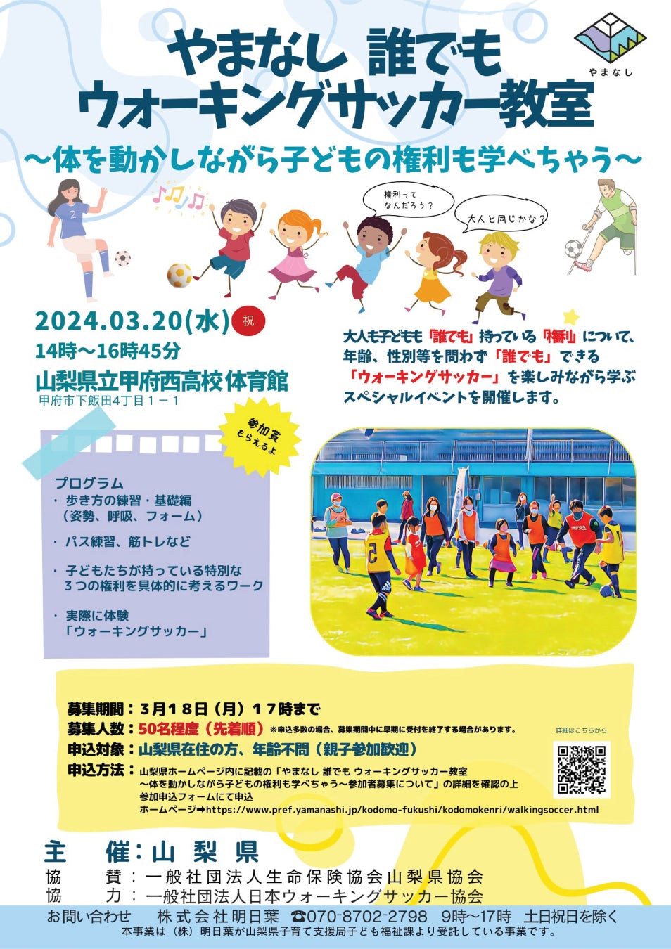 全国初の取組!子どもの権利×ウォーキングサッカーコラボ企画初開催!「やまなし誰でもウォーキングサッカー教室」参加者募集を開始