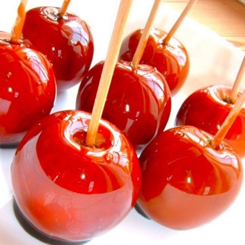 りんごを丸ごと使用し、外はカリカリ、中はジューシーなりんご飴です!