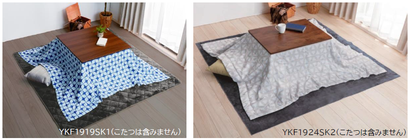 ・和モダン柄と北欧調柄の2柄、こたつに合わせた2サイズを用意
