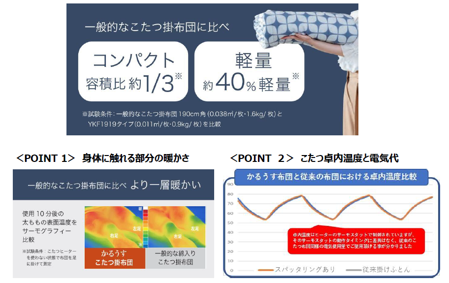 こたつ布団革命!容積1/3・重量40%減でも暖かさは同じ!手軽に洗濯もできる!かるうすこたつ布団「KARUS・かるうす」登場!