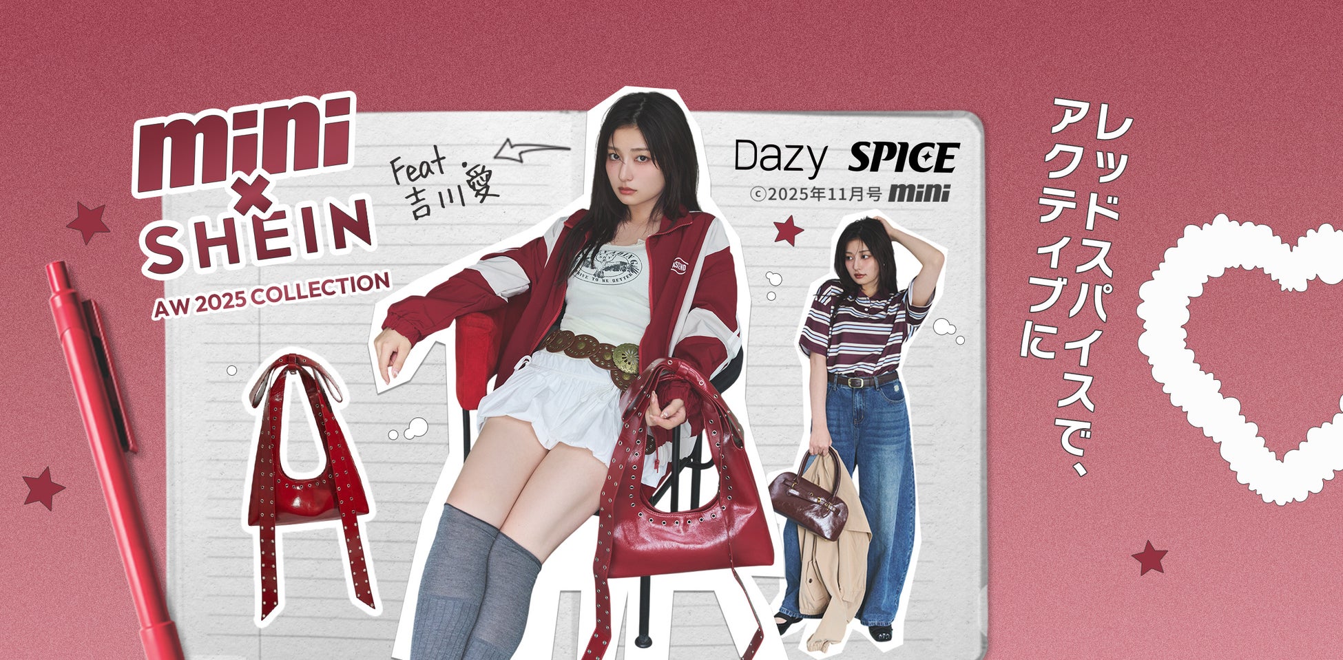 この度、SHEINは2025年10月10日(金)より、人気ファッション誌『mini』にて女優として活躍する吉川愛さんとのコラボレーションを発表します。吉川愛さんがSHEINの人気トレンドショップ「Dazy SPICE(デイジー スパイス)」「SHEIN ICON(シーイン アイコン)」「SHEIN MOD(シーイン モード)」「FRIFUL(フリフル)」のトレンドアイテムを着用し、今季秋冬に真似したいコーディネートを披露しています。