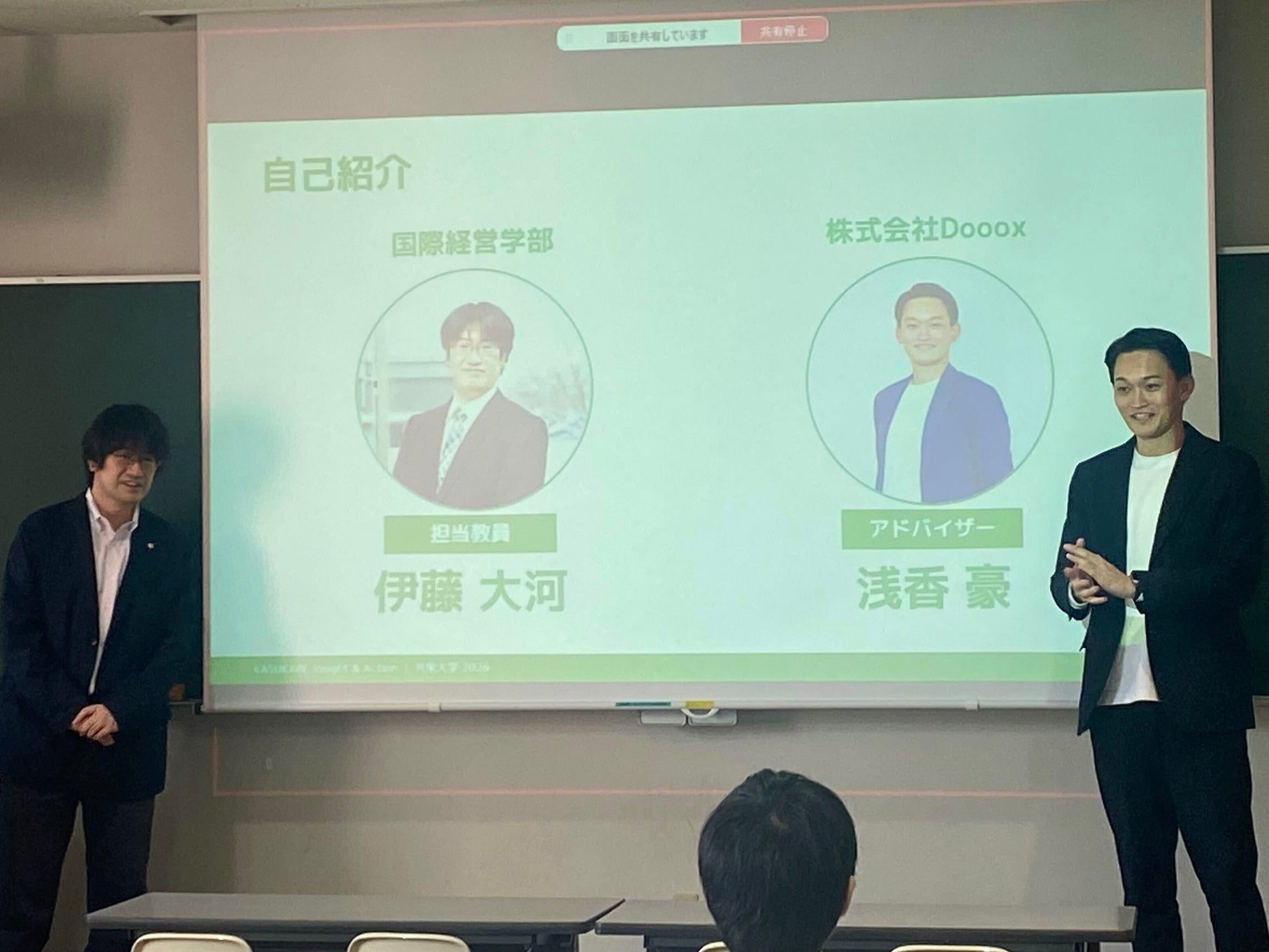 『緊急ではないけれど、重要な課題』について、企業経営者に伴走する特命社長室®︎を展開する株式会社Dooox(本社:東京都品川区、代表:久保寺亮介/以下「当社」)は、共栄大学(埼玉県春日部市、学長:平林 信隆)、春日部市、一般社団法人共力KASUKABE、一般社団法人 春日部市観光協会、株式会社 地域デザインラボさいたま、株式会社 埼玉りそな銀行と共同で、特別講義「KASUKABE Insight & Action」を共栄大学の2〜4年生を対象とした正規科目として開講します。2026年4月14日(火)に第1回ガイダンスを実施し、前期15回のプログラムが正式に始動しました。本授業の最大の特徴は、春日部市役所の各部署担当者・地元企業経営者・金融機関という「産官学金」の四者が登壇し、学生チームが最終回(7月)に春日部市長・副市長を前に政策提言を行う点です。地域課題の発見から政策提言まで一貫して実社会と接続したPBL(プロジェクト型学習)は、春日部市内初の取り組みです。