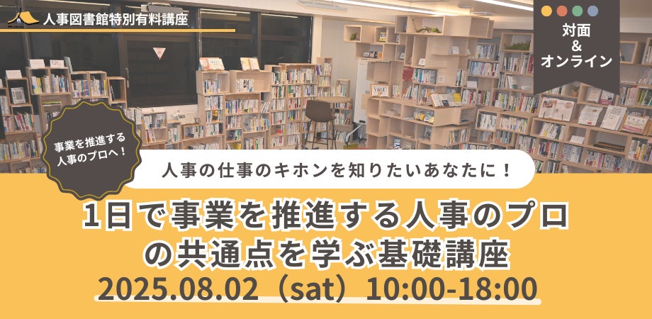 人事図書館主催にて、人事担当者・組織づくりに関わる方に向けて、「1日で事業を推進する人事のプロの共通点を学ぶ基礎講座」を開催いたします。初回はリニューアル特別価格にて実施いたします。