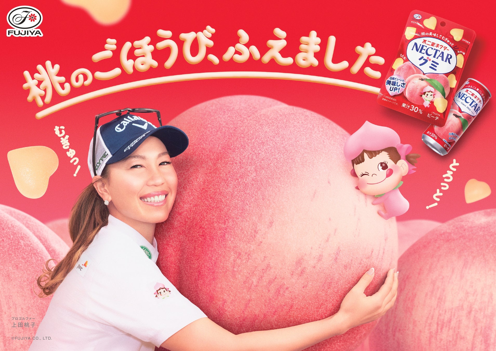 新商品発売に合わせ、現在スポンサー契約中のプロゴルファー上田桃子選手を起用したネクターブランドの新CM『不二家ネクター/桃のごほうび、ふえました』篇(15秒、30秒)を、2025年2月4日(火)より全国でオンエア開始いたします。