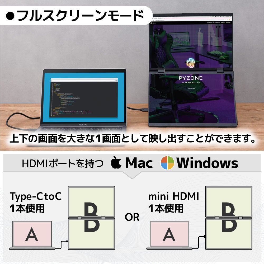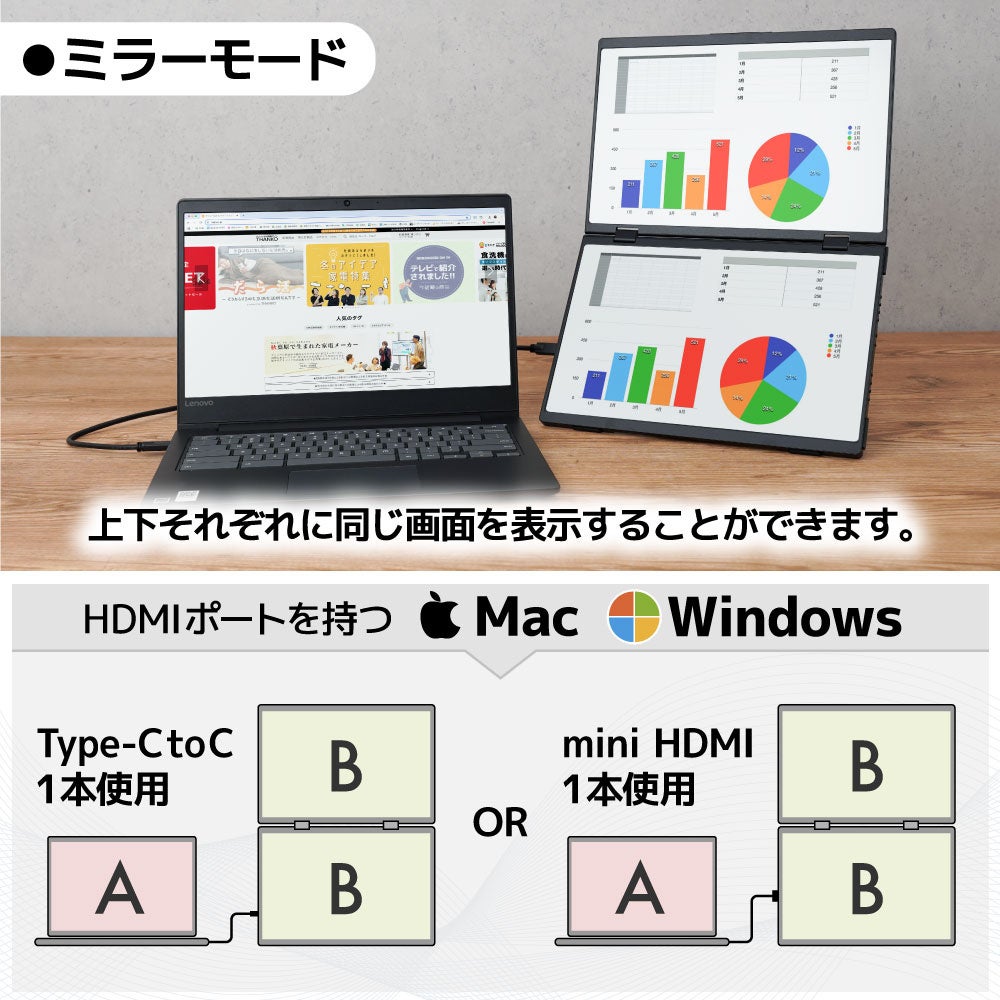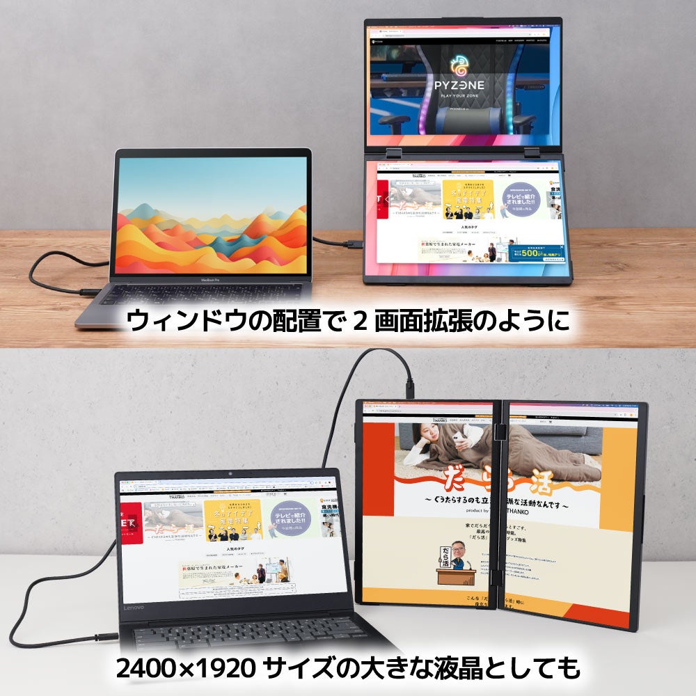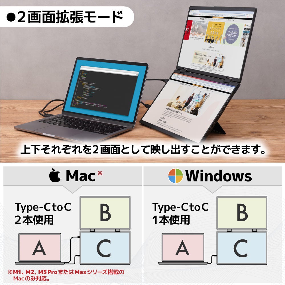 ■Mac/Windows両対応 Type-C接続のモバイルダブルディスプレイ