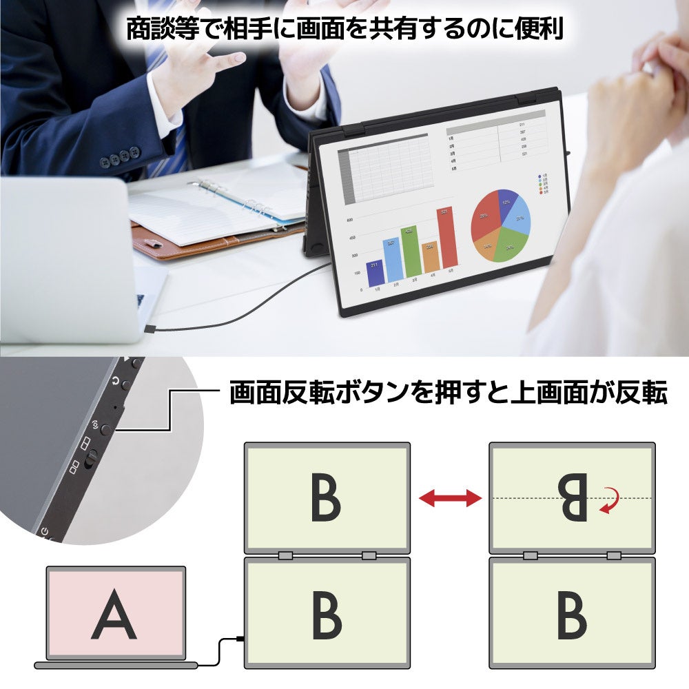 Mac/Windows両対応 上下2画面拡張ポータブルモニター