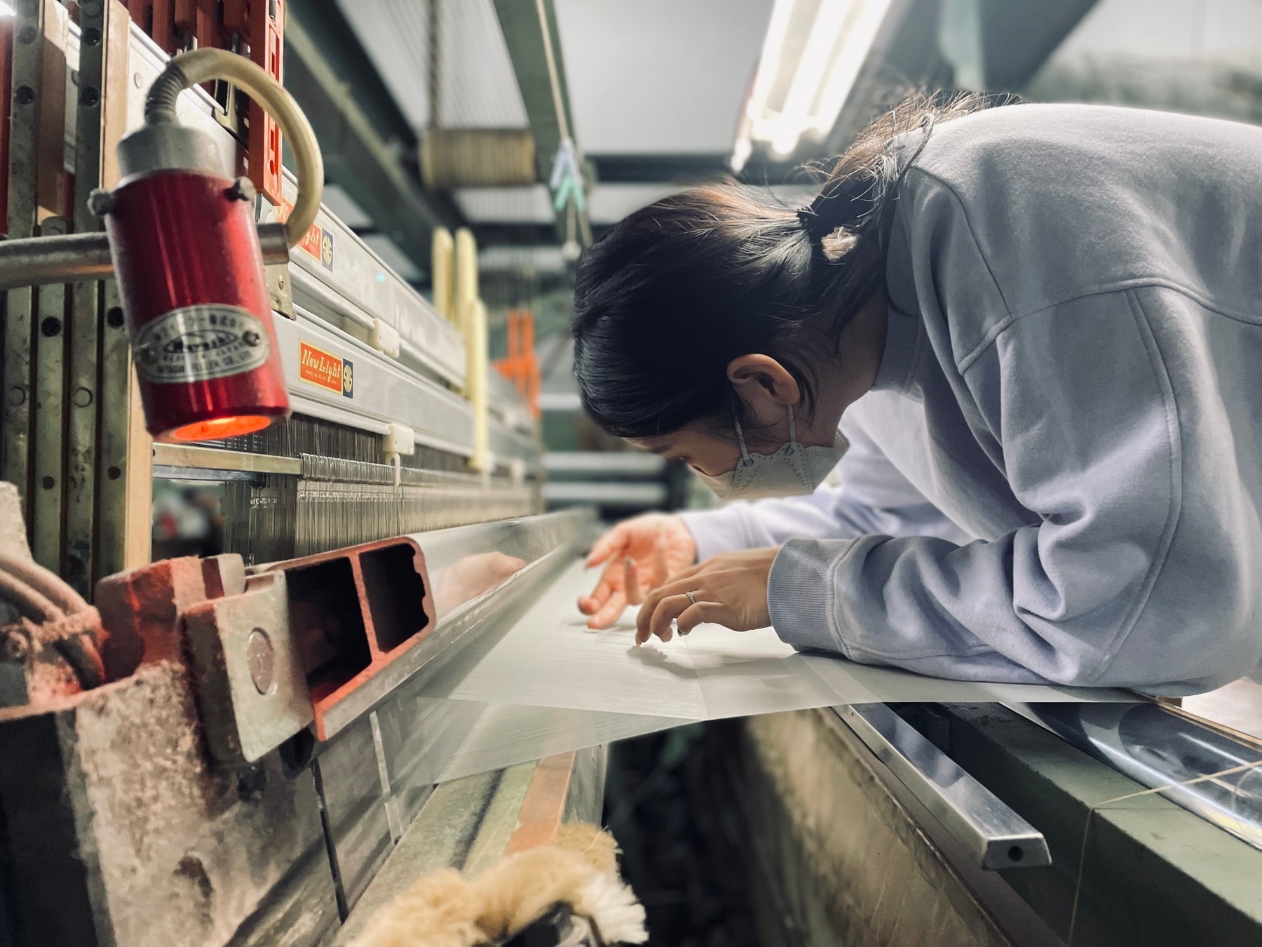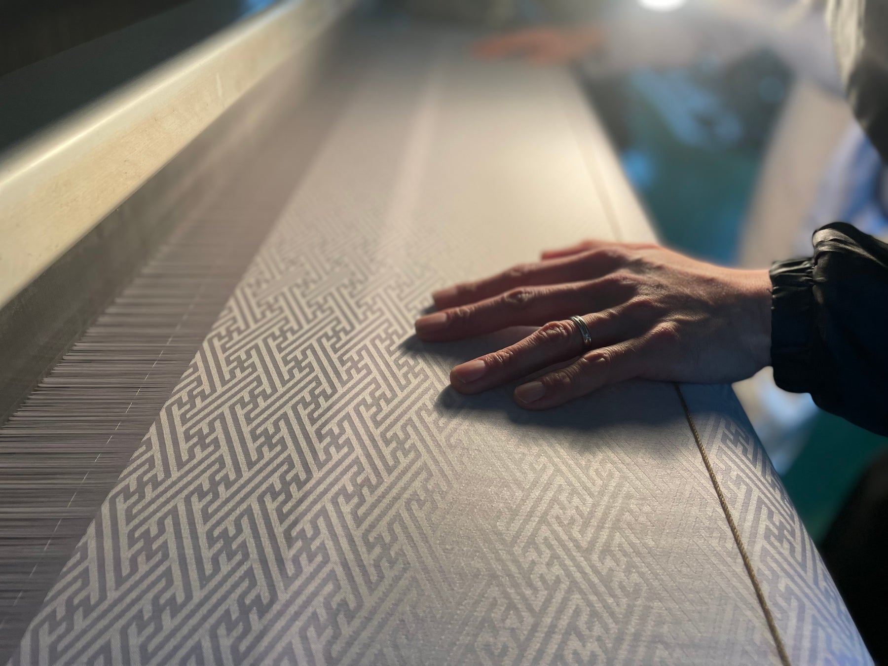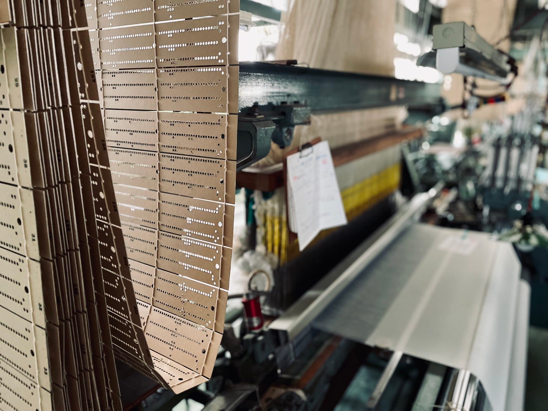 「小倉織物」は、1895年(明治28年)に石川県にて創業しました。かつてシルクジャガード織物工場は小松市に600軒ほどありましたが、現在では職人の高齢化や海外の安価な製品の流入、またコロナの影響などにより多くの織物工場が廃業。今では「小倉織物」が、広幅洋装シルクジャガードを織り上げる国内最後の工場となりました。しかしその高い技術力と高品質な製品が評価され、国内だけでなくパリコレに出展する多くの海外メゾンブランドからドレス用の生地として採用されるほど、世界中から注目が集まっています。