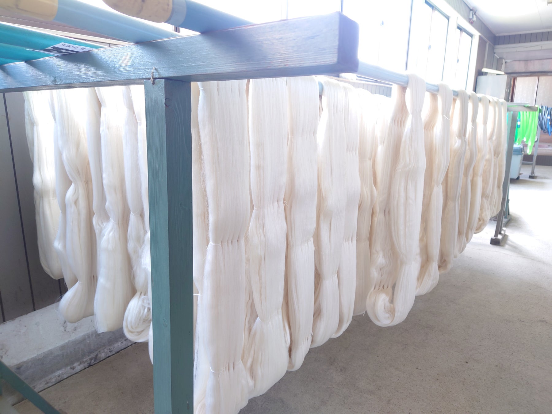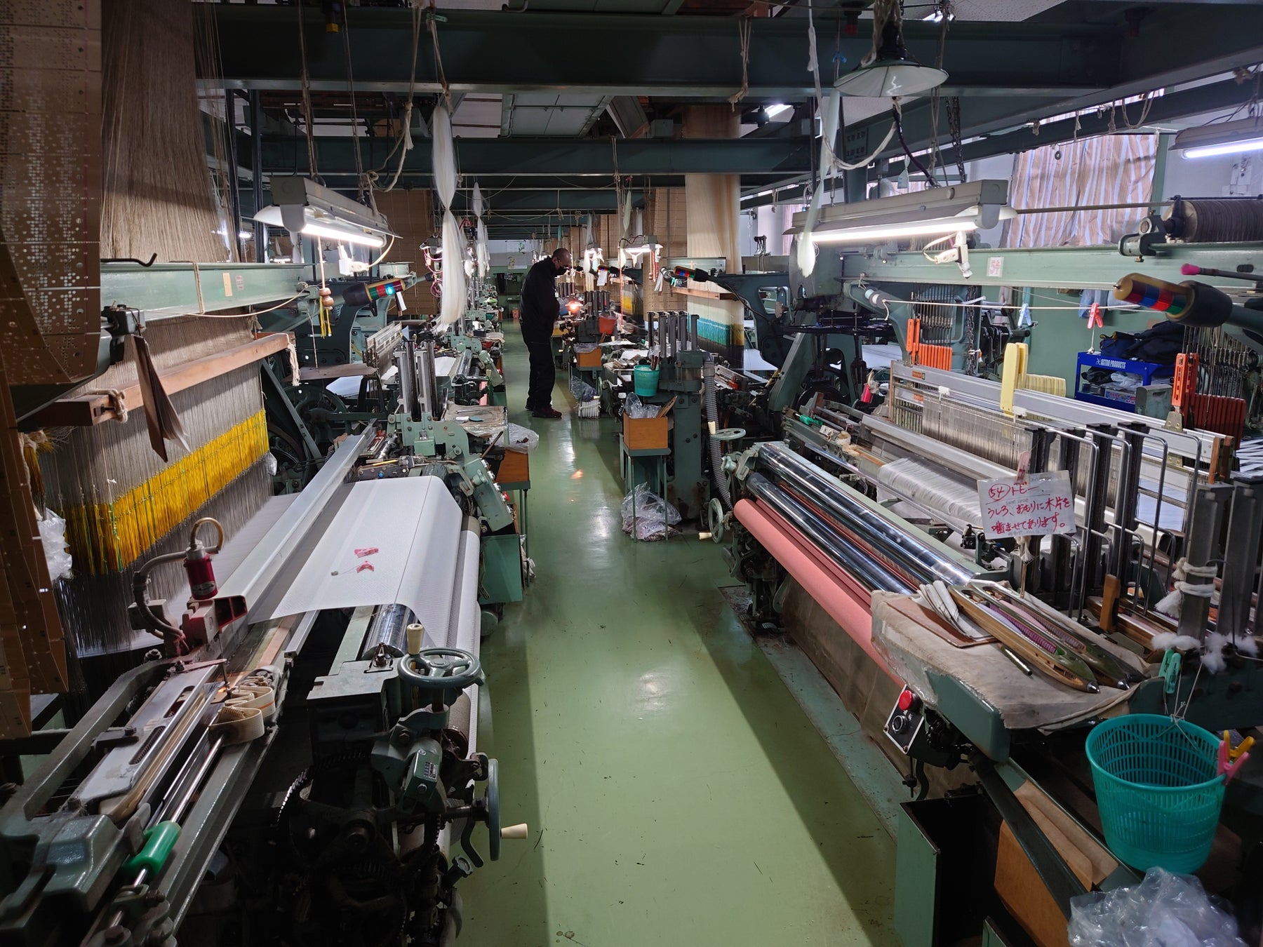 ※シルクジャガードには洋装と和装があり、洋装で横幅が150cmもあるシルクジャガード織機を使用する工場は、日本で「小倉織物」のみ。