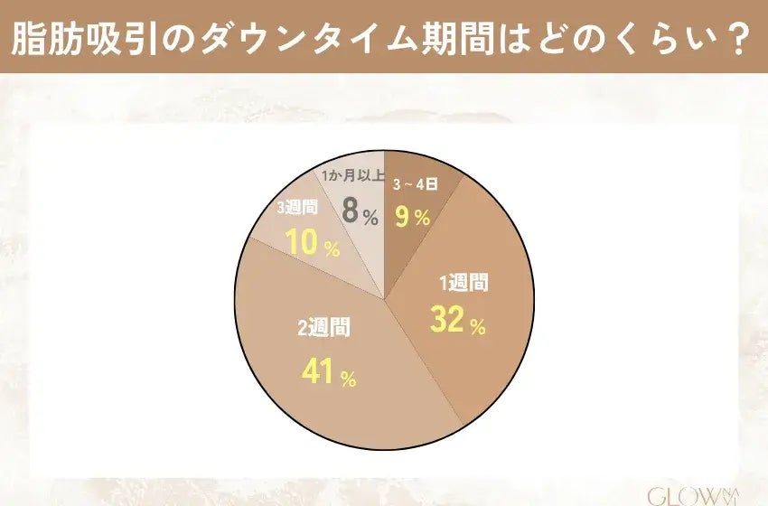 ダウンタイムについては「2週間」が41%で最多となり、「1週間」(32%)と合わせると7割以上が「1~2週間」のダウンタイムを経験していることがわかりました。