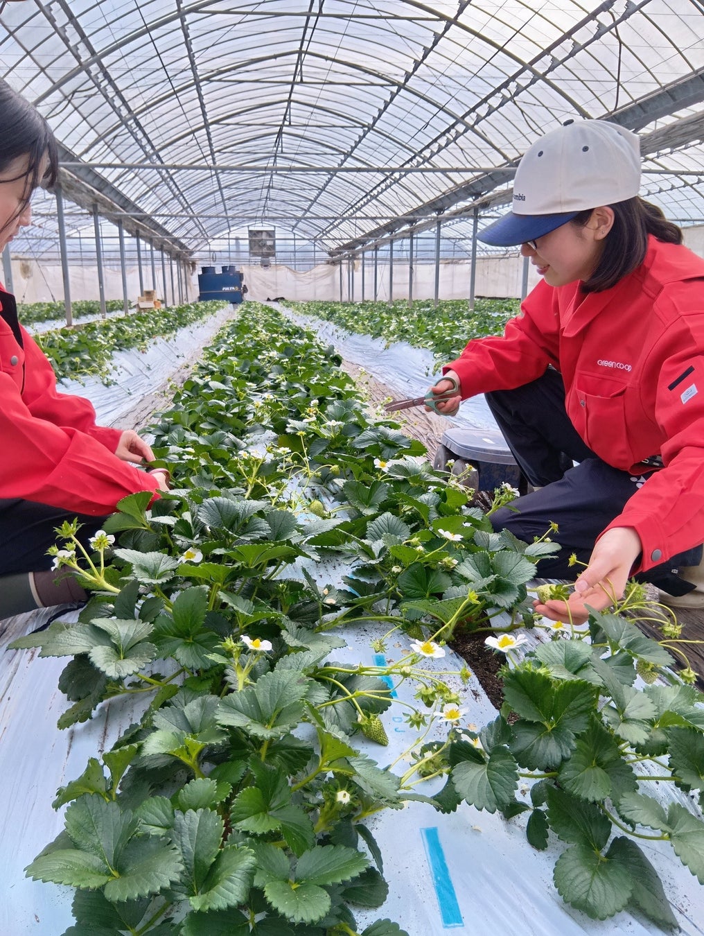 西日本を中心に16の生協で構成されている一般社団法人グリーンコープ共同体(本部:福岡市博多区、代表理事:日高 容子、以下グリーンコープ)は、グリーンコープ生活協同組合連合会本部の職員を平日に有機いちごの産地へ派遣し、収穫と出荷の支援を実施しています。また土曜日と日曜日には組合員が農作業に参加し、切れ目ない支援を実現しています。