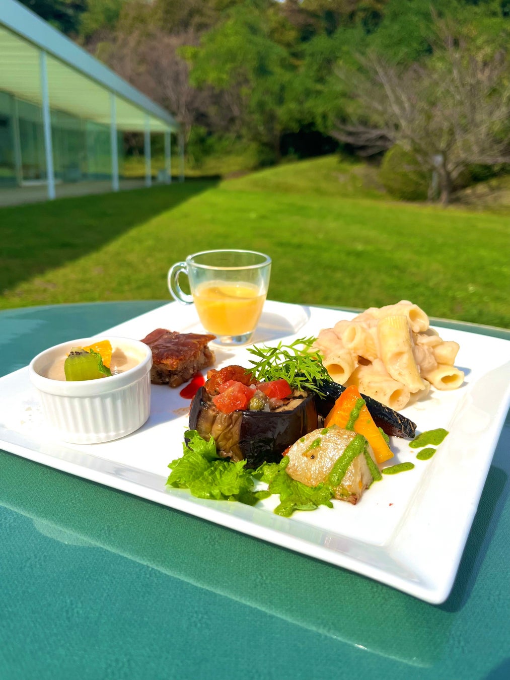 ・ 運慶が活躍した鎌倉時代に中国から伝わったとされる“精進料理”をイメージしたワンプレートディッシュです。植物性の食材を使用した前菜、パスタ、デザートを1皿に盛り合わせてご提供いたします。