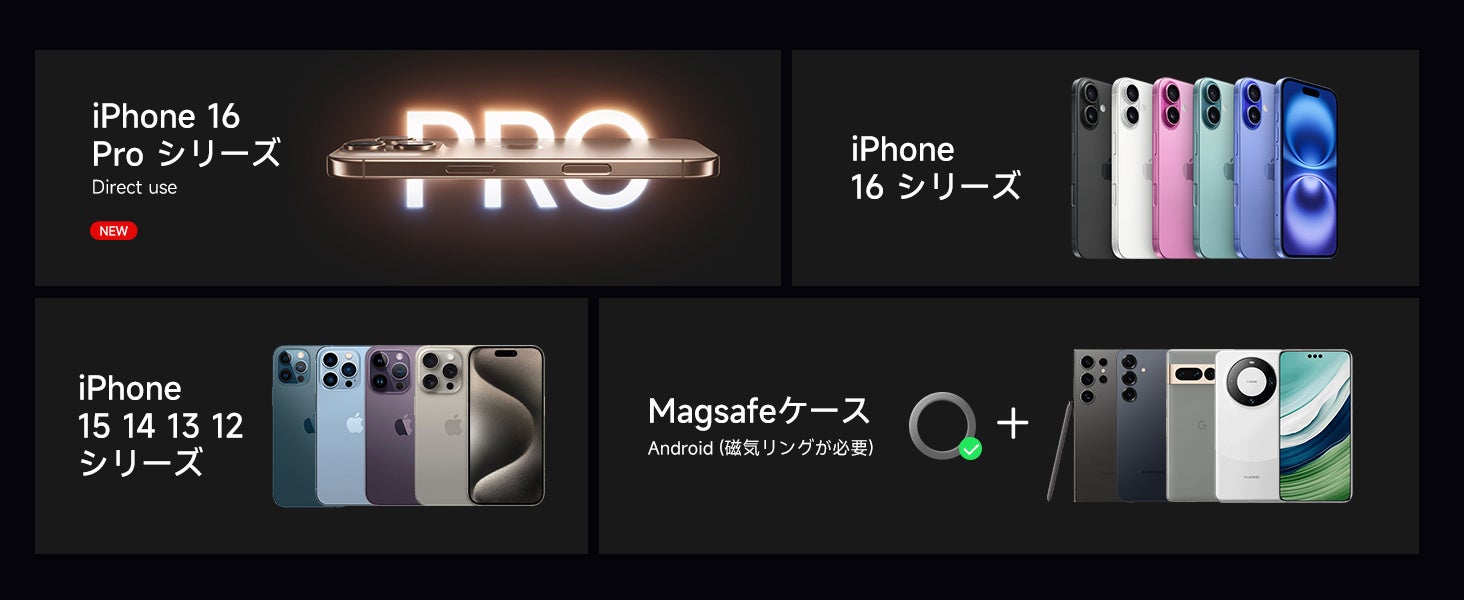 Qi認証の純正チップを搭載し、75%の高効率変換率を実現。デュアル入力ポートにより充電方法を選ばず、従来比2倍以上のスピードで、iPhone16シリーズを含むほぼ全てのスマートフォンに対応します。ダブルコイルと精密磁気リングが、安定性と電池保護を同時に叶えます。