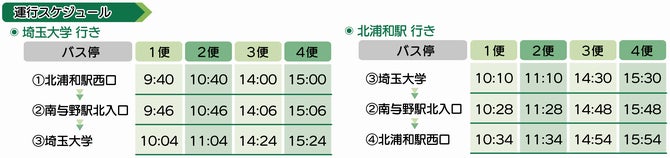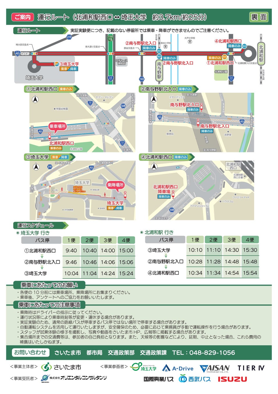 埼玉大学を起点に埼玉大学から北浦和駅西口間を往復(その他試乗期間は北浦和駅西口が起点となります)