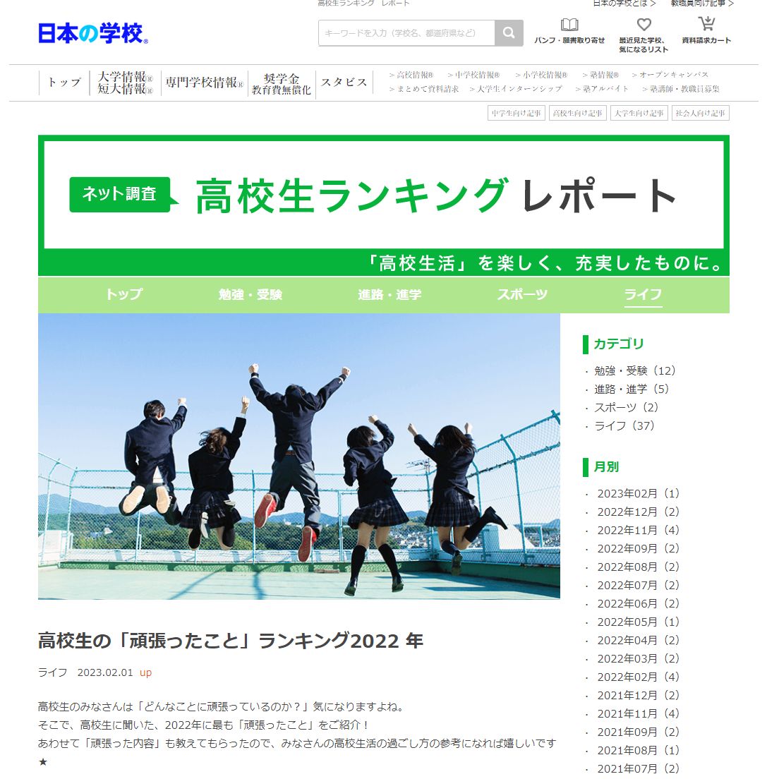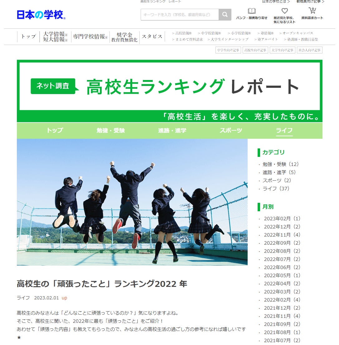 高校生ランキングレポート「高校生の「頑張ったこと」ランキング2022年」:https://school.js88.com/koukousei/life/58