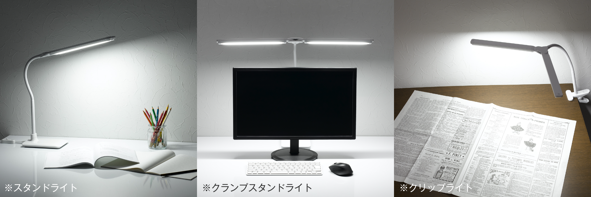 インテリア家電製品および、PCサプライ品の製造販売を手掛ける株式会社ヤザワコーポレーションは、ヘッドが開いて広く照らせる調光機能付きスタンドライト、クランプスタンドライト、クリップライトを発売しました。