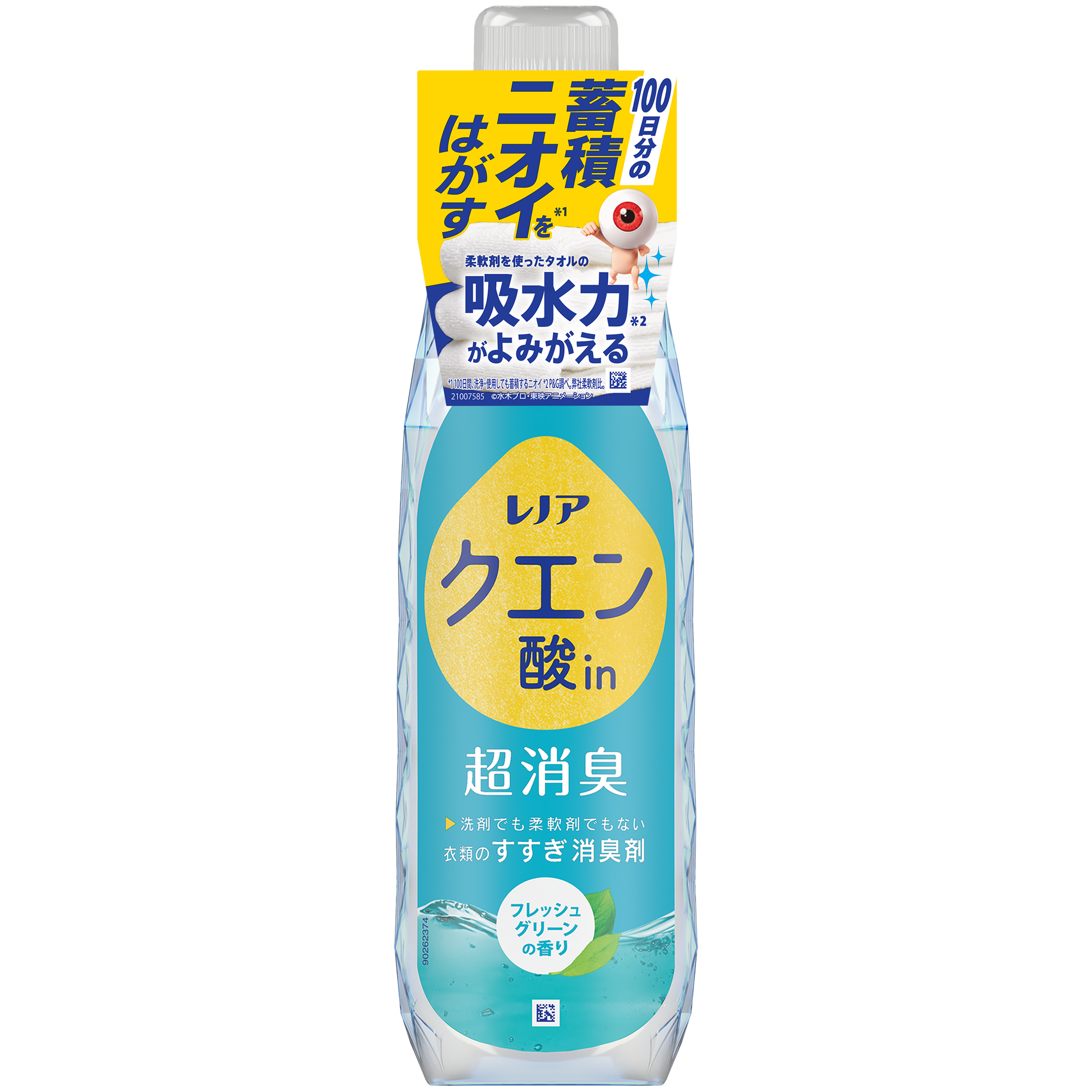 P&Gジャパン合同会社(本社:神戸市)は、洗剤でも柔軟剤でもない新しいジャンルの『すすぎ消臭剤』として2023年7月に発売した「レノア クエン酸in超消臭」を、2024年8月上旬よりリニューアル致します。“柔軟剤を使ったタオルの吸水力がよみがえる*2”新便益を訴求するとともに、一番人気のフレッシュグリーンの香りを新改良致します。