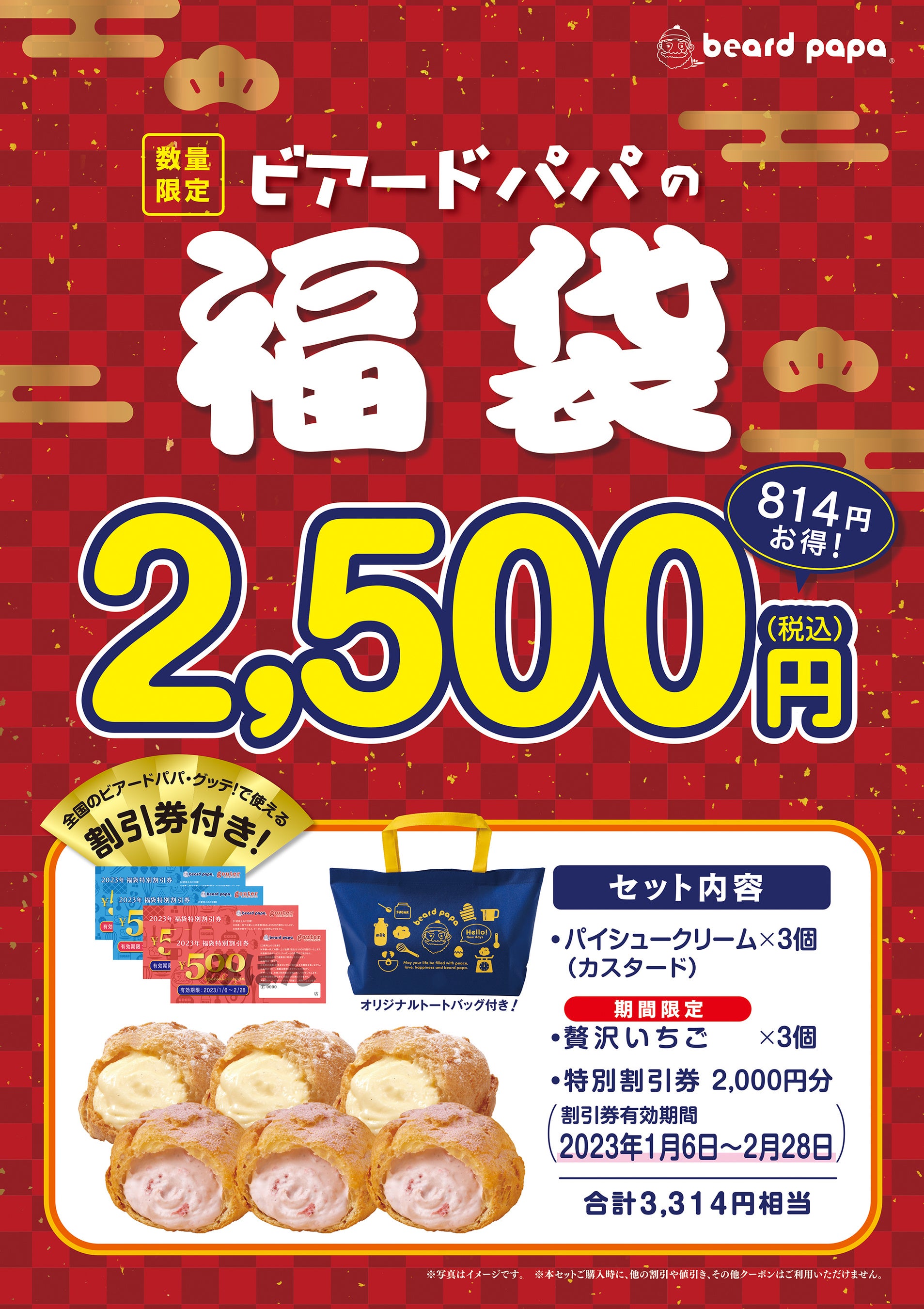 〇数量限定“ビアードパパの福袋 2,500円”