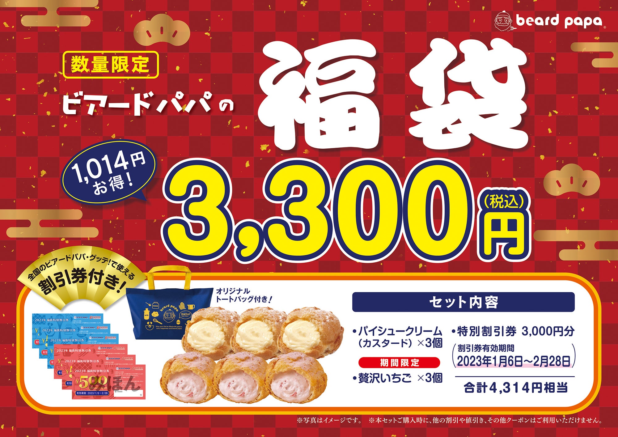 〇数量限定“ビアードパパの福袋 3,300円”