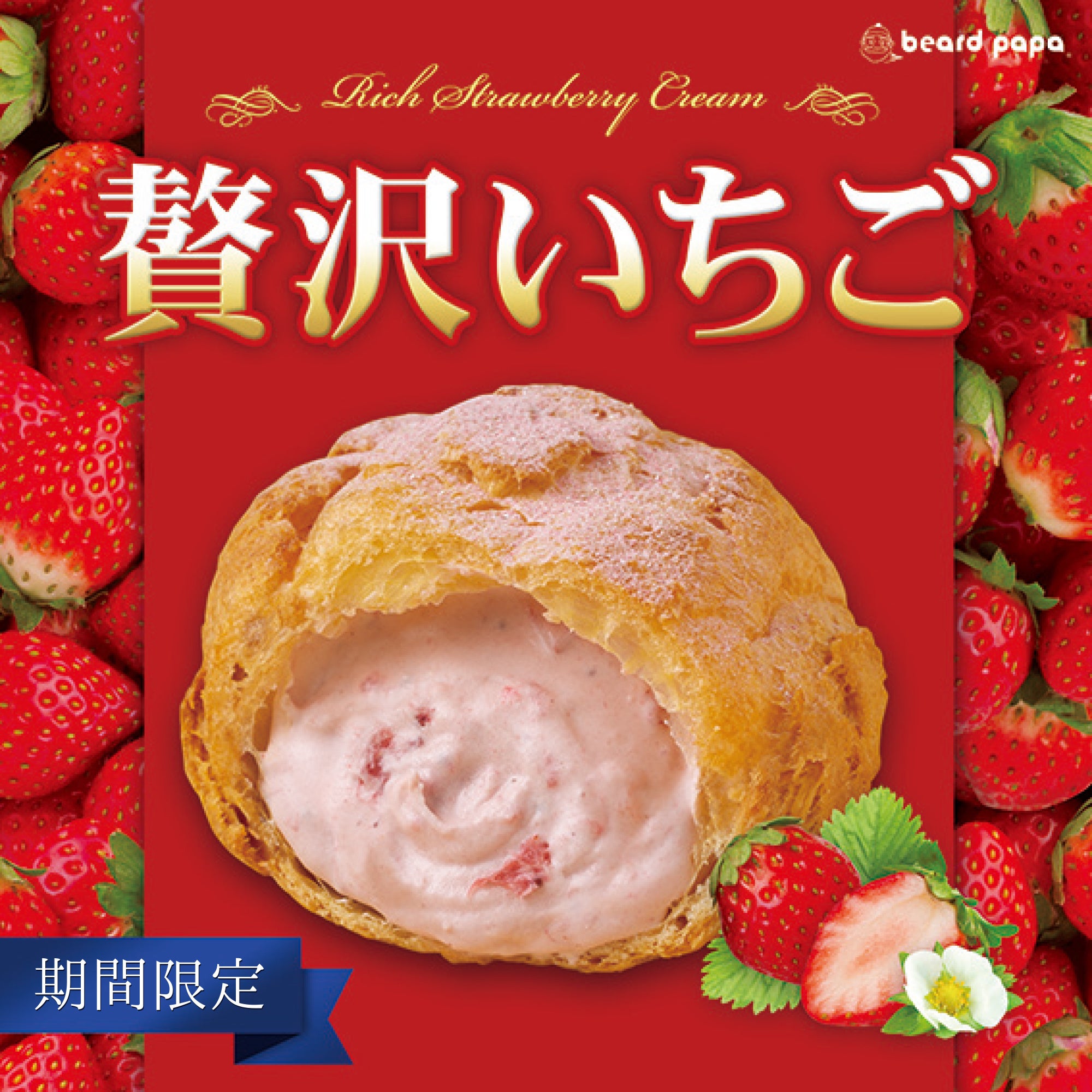 “贅沢いちご”はコク深い生クリームに、甘酸っぱい苺の美味しさをギュッと詰め込んだ贅沢な味わいです。