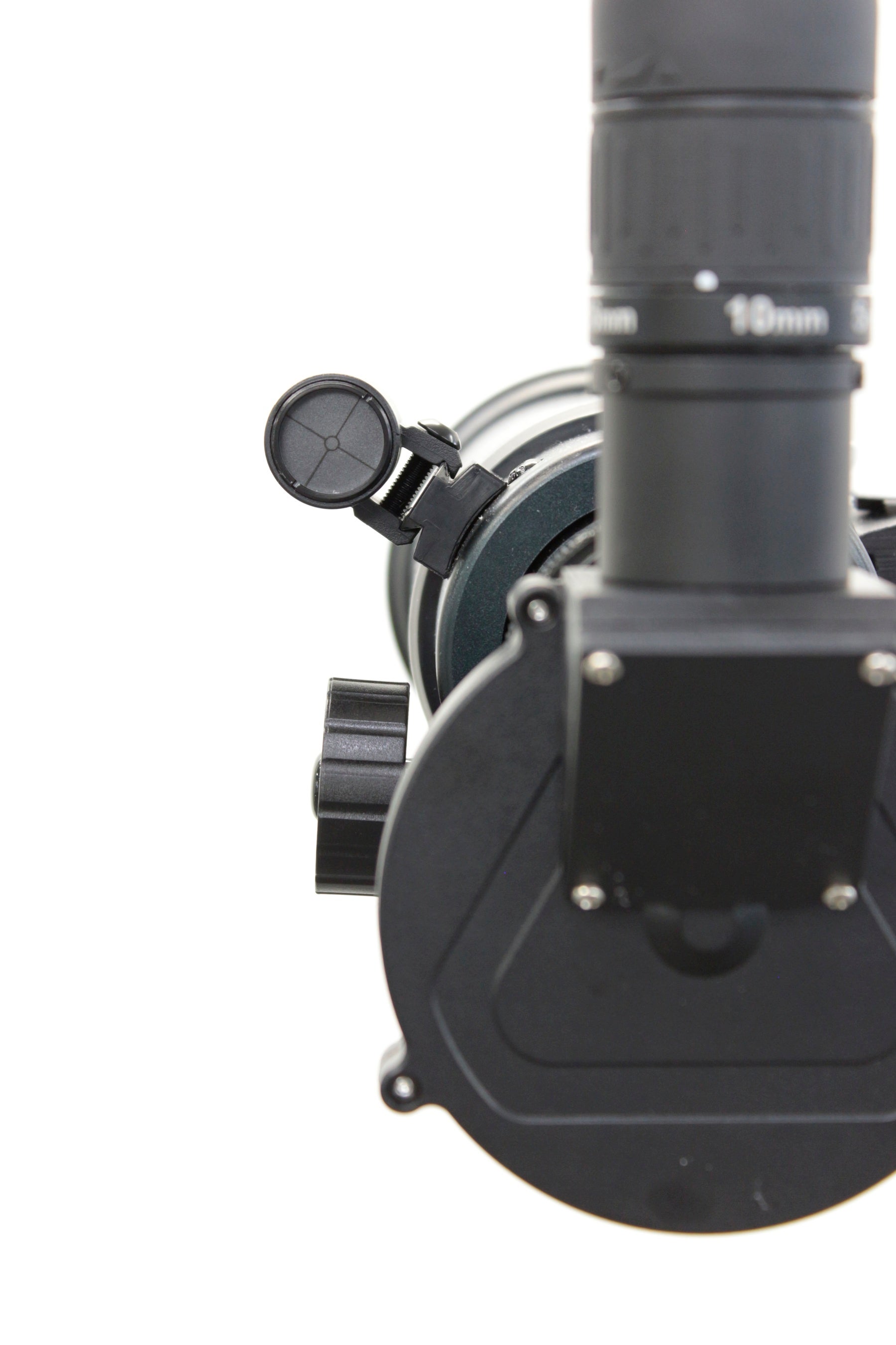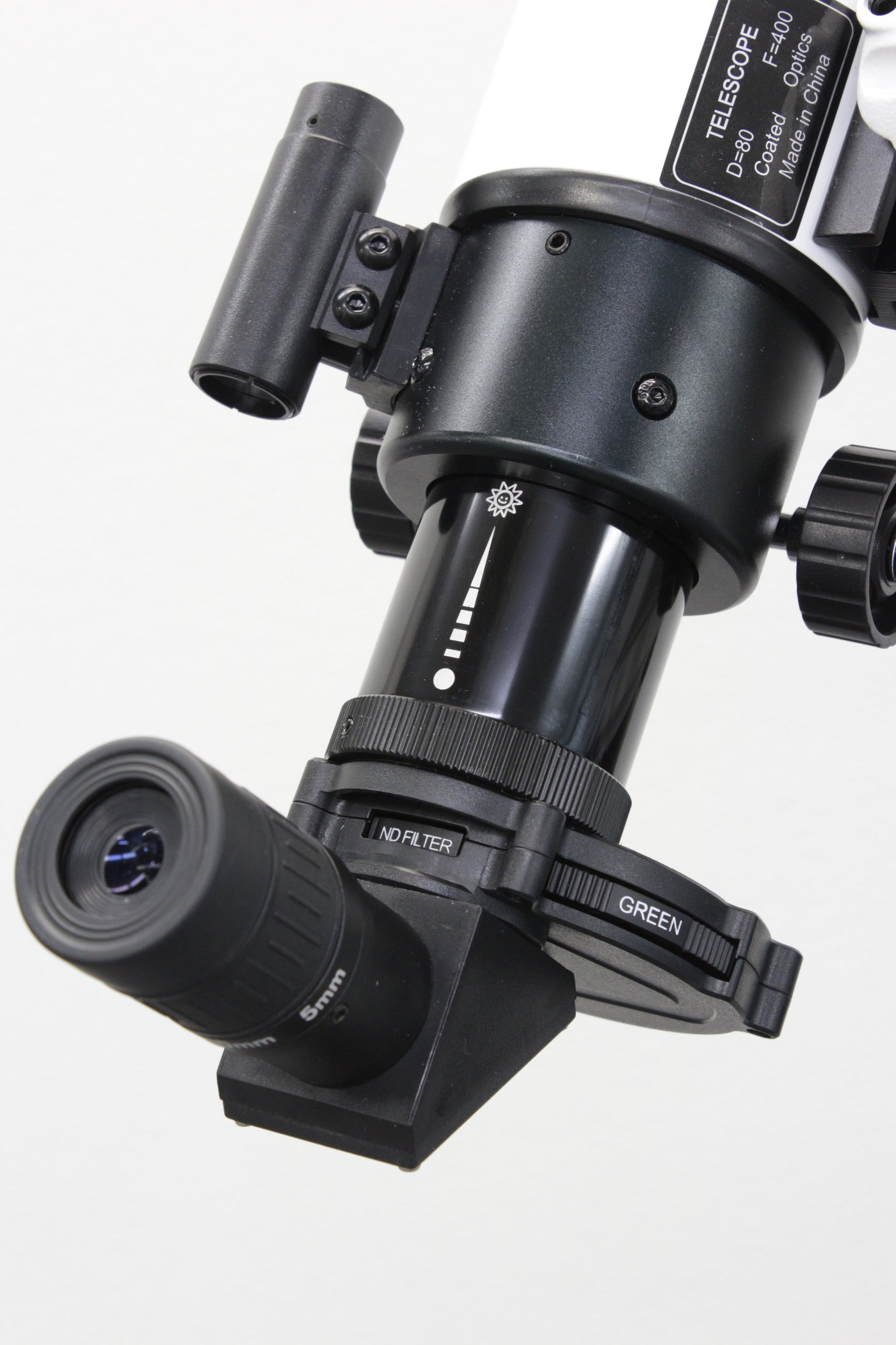 口径80mm屈折式望遠鏡の対物レンズ側に太陽観測用フィルターが内蔵されています。安心して太陽を観察できます。