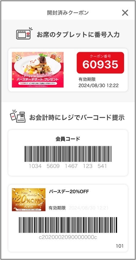 そのいずれのクーポンも、ご使用の際に一目でわかる「開封済みクーポン一覧」機能を実装することで、クーポンの出し忘れ、ポイント(ぷに)付与に必要な会員コードのご提示忘れを防ぐことができます。