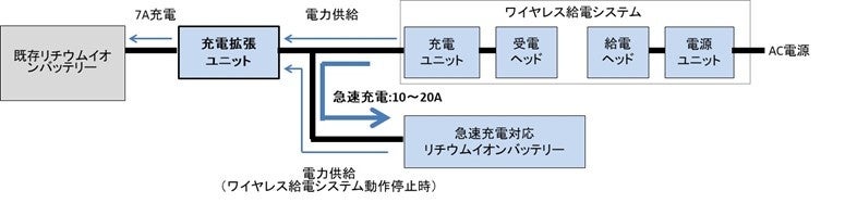 そこで当社は、「急速充電に対応したバッテリー」と「既存バッテリー」を分離し、それぞれの特性を活かして効率的に電力供給する構成に着目しました。本製品は、異なる特性を持つバッテリーを組み合わせる新しい電力供給方式により、これらの課題を解決します。