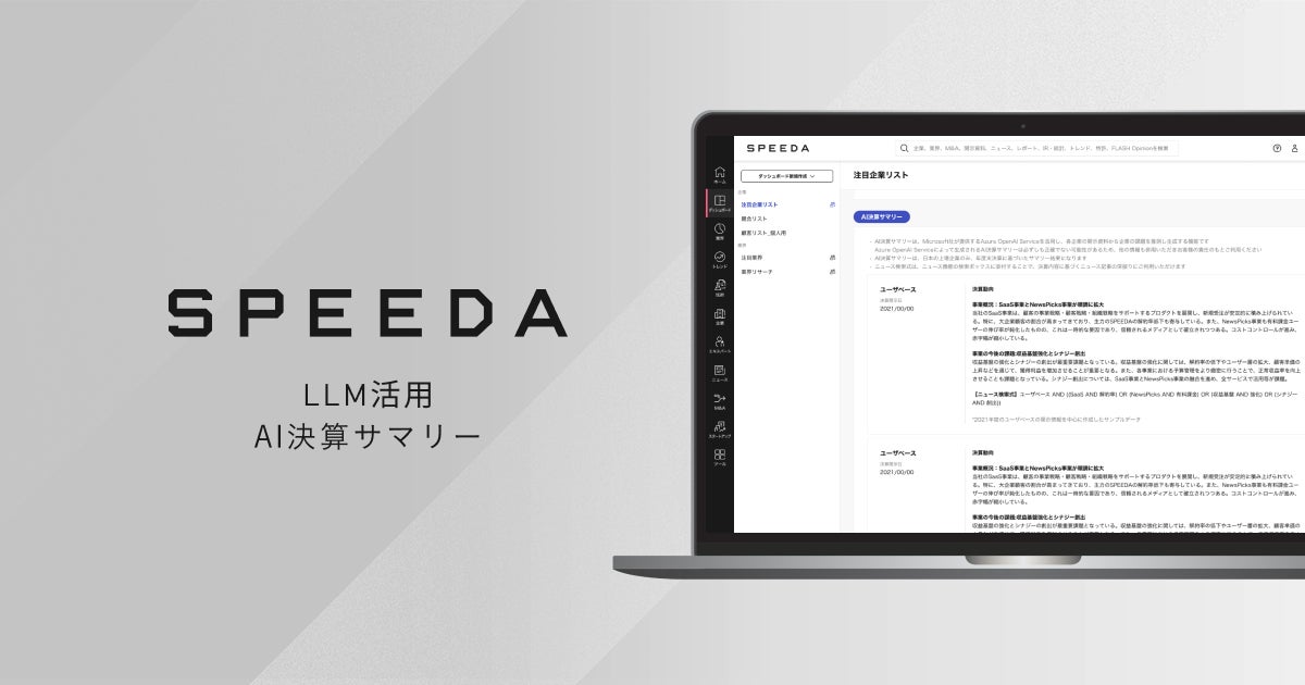 SPEEDA、生成AIで決算の要約とインサイト抽出を容易にする「AI決算サマリー」を提供開始
