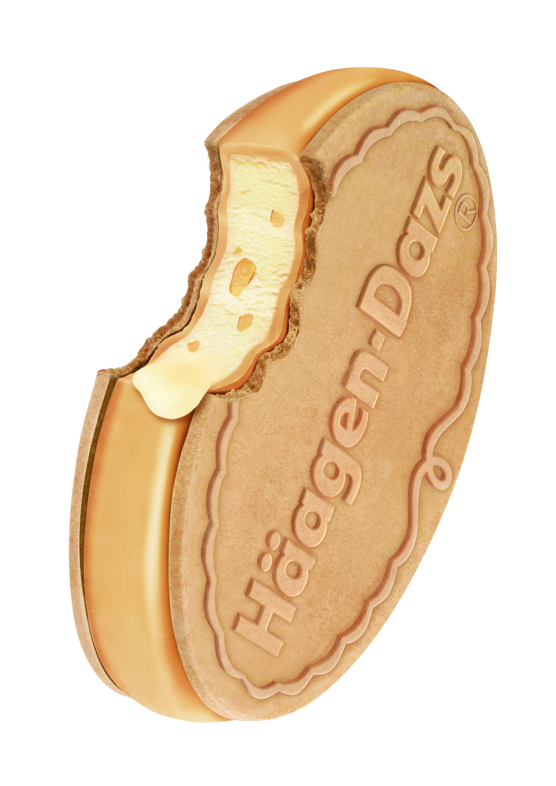 香ばしいマカデミアナッツが入った濃厚な味わいのバタースカッチアイスクリームを、パリパリとしたバタースカッチコーティングで包みこみ、サクサク食感のウエハースでサンドしました。