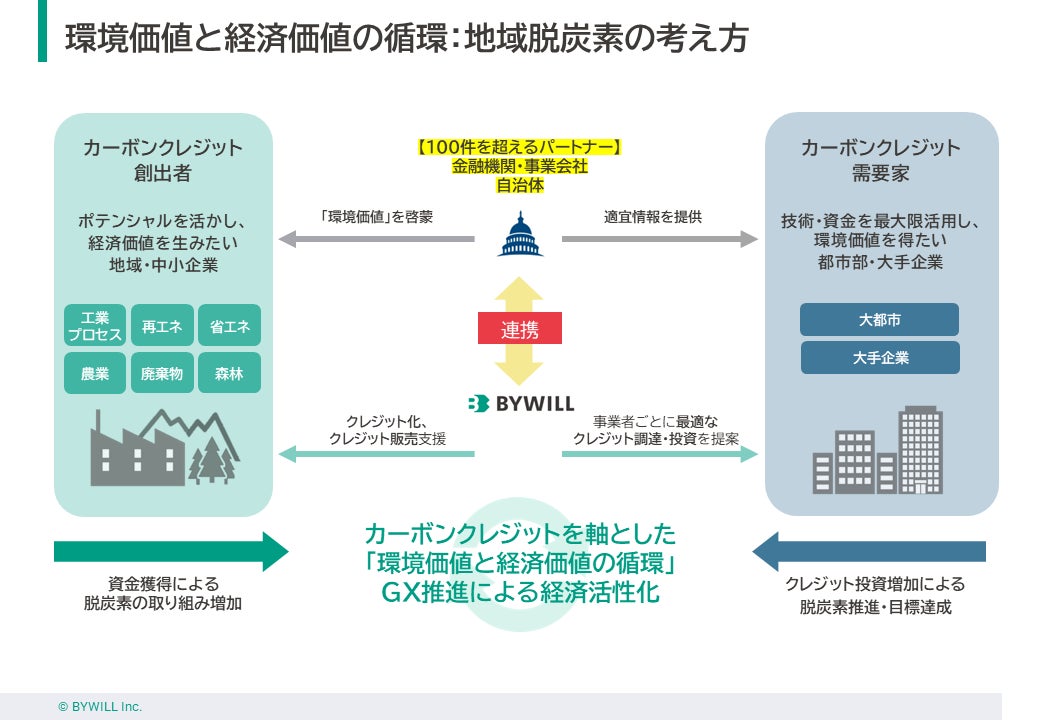 カーボン・クレジットによって「環境価値と経済価値の循環」を図り、全国の連携パートナーと共に持続可能な社会の実現を目指す