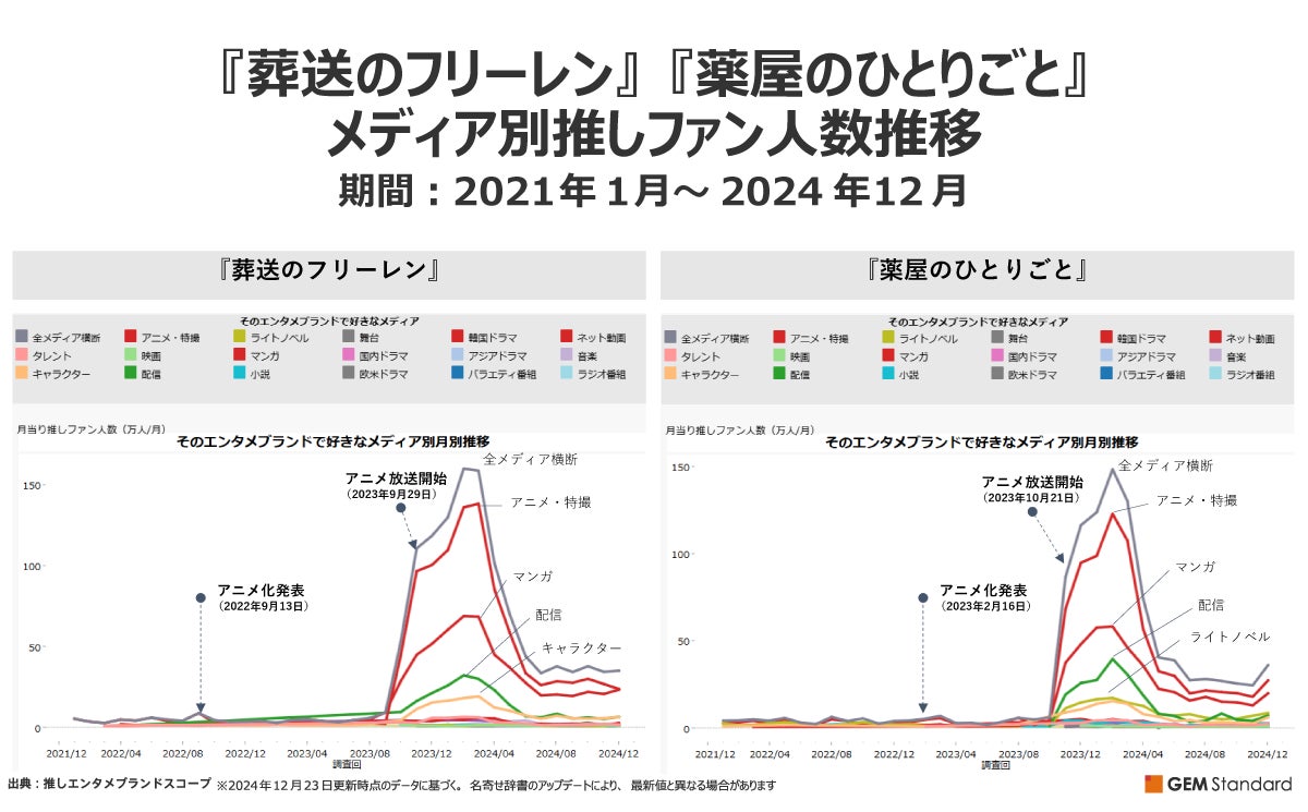 『葬送のフリーレン』は2024年9月にTVアニメ2期の制作発表があったほか、『薬屋のひとりごと』は2025年1月からTVアニメシーズン2の放送が予定されています。どちらも注目度と期待が高いことから、シーズン1放送時以上の推しファン人数を獲得するのか、動向が注目されます。