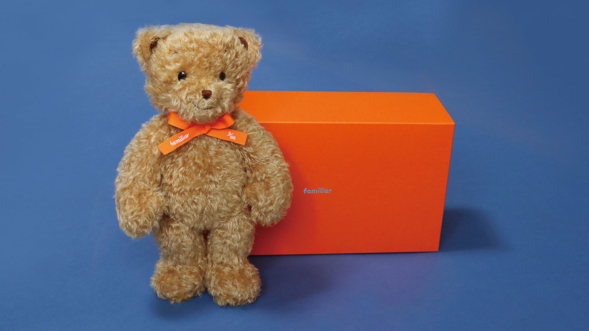 シュタイフ・シュルテ社製のモヘヤ生地をつかったMade in Japanのファミリアベアーに、今年の限定カラー「ブラウン」が登場。シリアルナンバー入り・100体限定で、世界に一つだけのプレミアムなファミリアベアーです。美しい毛色となめらかな手触りもポイント。リボンとリンクしたオレンジのギフトボックス付きで、クリスマスのプレゼントにもおすすめです。