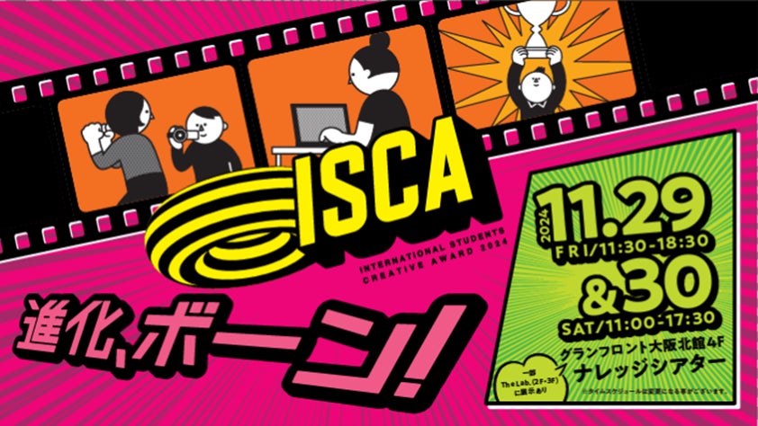ISCAは、ナレッジキャピタルが人材育成と国際交流を目的に毎年開催している、学生を対象とした映像とデジタルコンテンツ作品の国際的なクリエイティブアワードです。受賞した映像作品が世界最古の短編映画祭のひとつ「オーバーハウゼン国際短編映画祭」をはじめとする海外の各映画祭において上映されるなど、国内外で活躍するクリエイターを輩出しており、未来を担う若手アーティストの登竜門として認知されています。