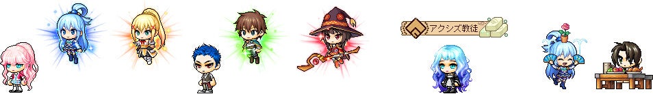 メイプルワールドに迷い込んだ、『このすば』のキャラクターたち。成長して元の世界に帰りたいという彼らの手伝いをしながら、コラボ限定アイテムなどの様々な報酬を手に入れましょう。