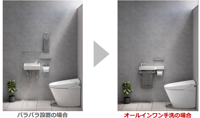 1台5役でトイレの壁をすっきりさせる、新カテゴリーのトイレ手洗「オールインワン手洗」を新発売