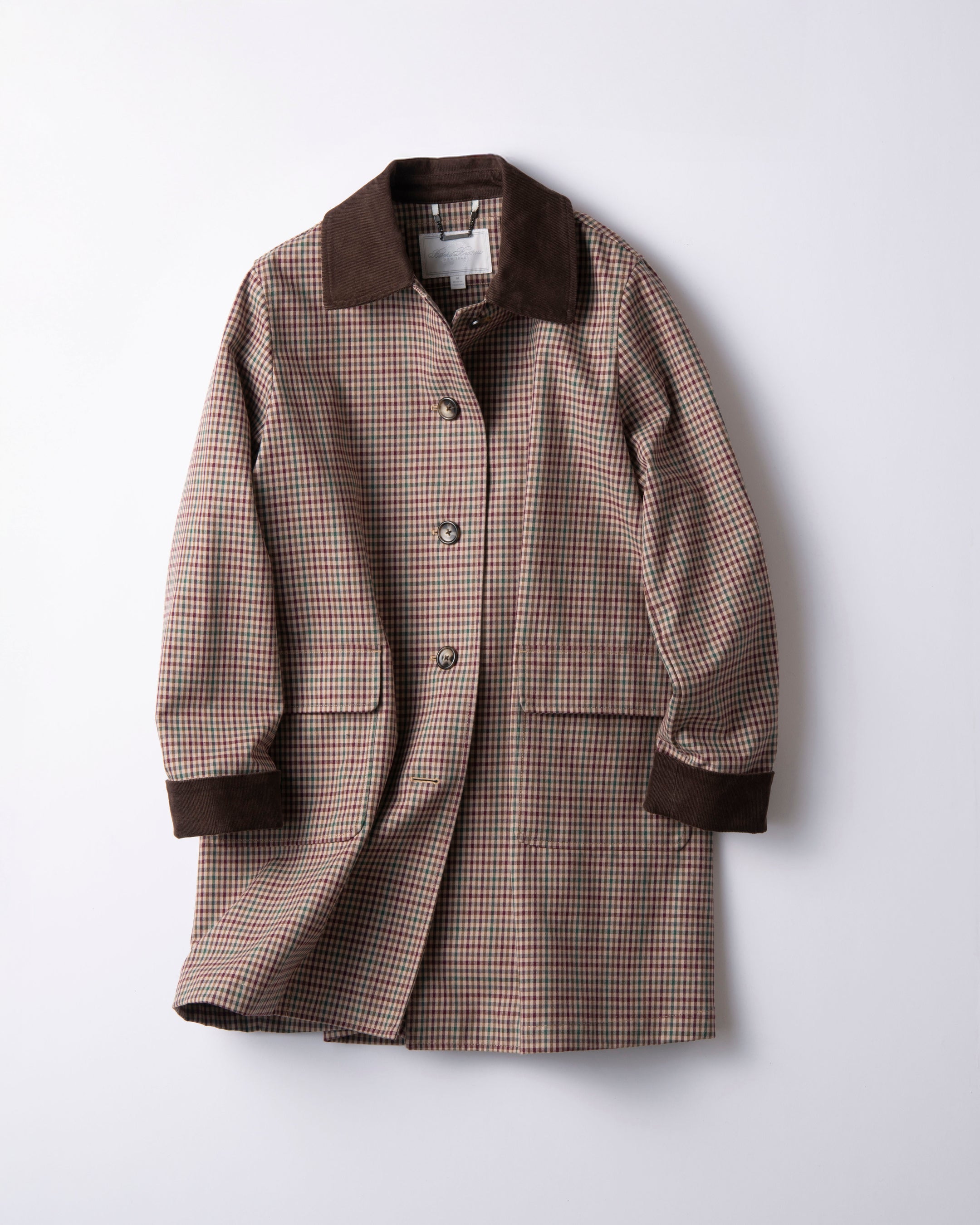 「茶系は今季トレンド。しかも、細かいチェックなら遠目にはほぼ無地に見えるので、意外と合わせやすいんです。昔は“合い物”と呼ばれる中途半端な季節のコートってあまり出番がなかったけれど、今の気候だとむしろ一番活躍するのではないでしょうか。重ね着すれば冬まで十分使えますし、分厚いコートよりも軽くて扱いやすいのも大人には嬉しいですね」