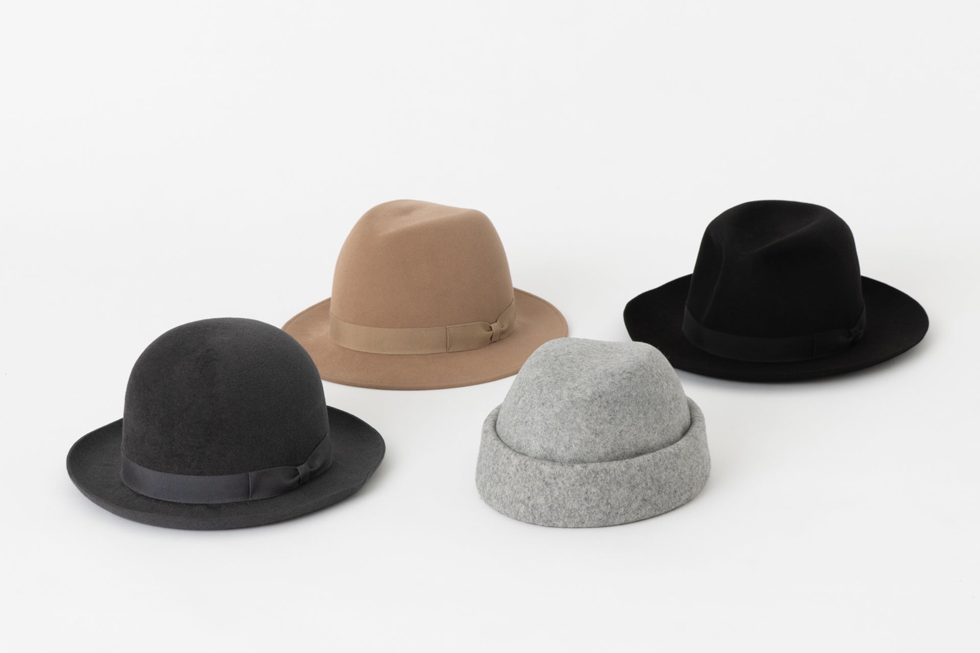 期間中は、全4型のハットを3種類の素材と2〜3色のカラーバリエーションからお選びいただけます。