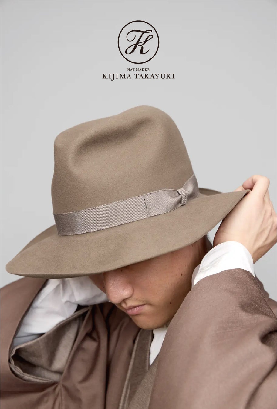 KIJIMA TAKAYUKIは、様々な事柄から伝わる時代の空気感を独自の視点とバランス感覚で取り入れ、「スタイリングで生きるデザイン」をコンセプトに置くハットブランド。1990〜1994年に帽子デザイナーの第一人者・故平田暁夫氏に師事し、イッセイミヤケ、ヨウジヤマモト、コムデギャルソンなどの帽子製作に携わり、ヨーロッパのオートモード技術を習得。1995年に東京・代官山にアトリエを設立、1999年に直営店をオープン。アトリエでは熟練した技術を持つ職人たちが、一つ一つ丁寧な手仕事でつくり上げている。量産的生産方法にはできない、柔らかく心地よい着用感を生みだす独自の技法が用いられています。