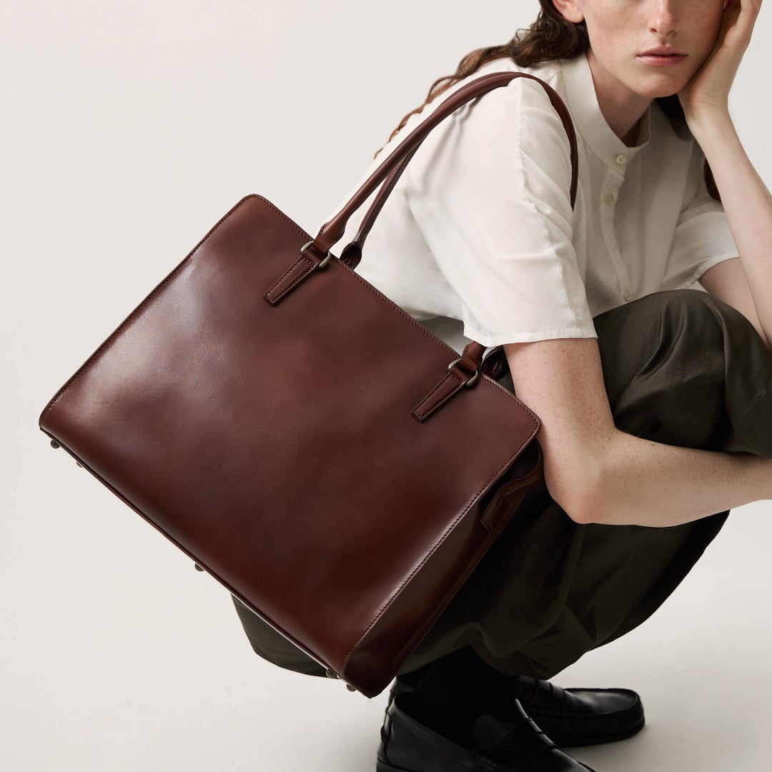 横顔に秘められた機能美。 アンティークレザーの新しいトートが誕生しました。
