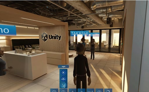 BIM・点群データを活用し、ユニティ・テクノロジーズ・ジャパン株式会社の本社を再現したデモ「Unity Japan Office」の中で、ユーザー同士がアバターを通じてコミュニケーションできるアプリケーションです。チャット対応のほか、時間帯などの変更が可能です。マルチプラットフォーム(PC, Web, Meta Quest, Mobile Web )に対応しています。