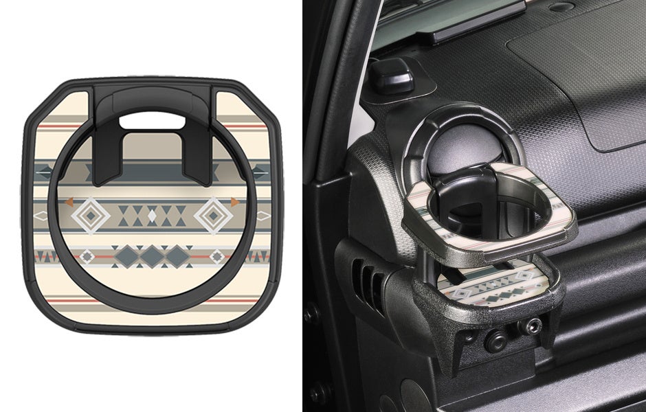 ジムニーのフロントフェイスがドリンクホルダーに。オルテガ柄とクラシカルなウッド調の新デザイン2種が登場