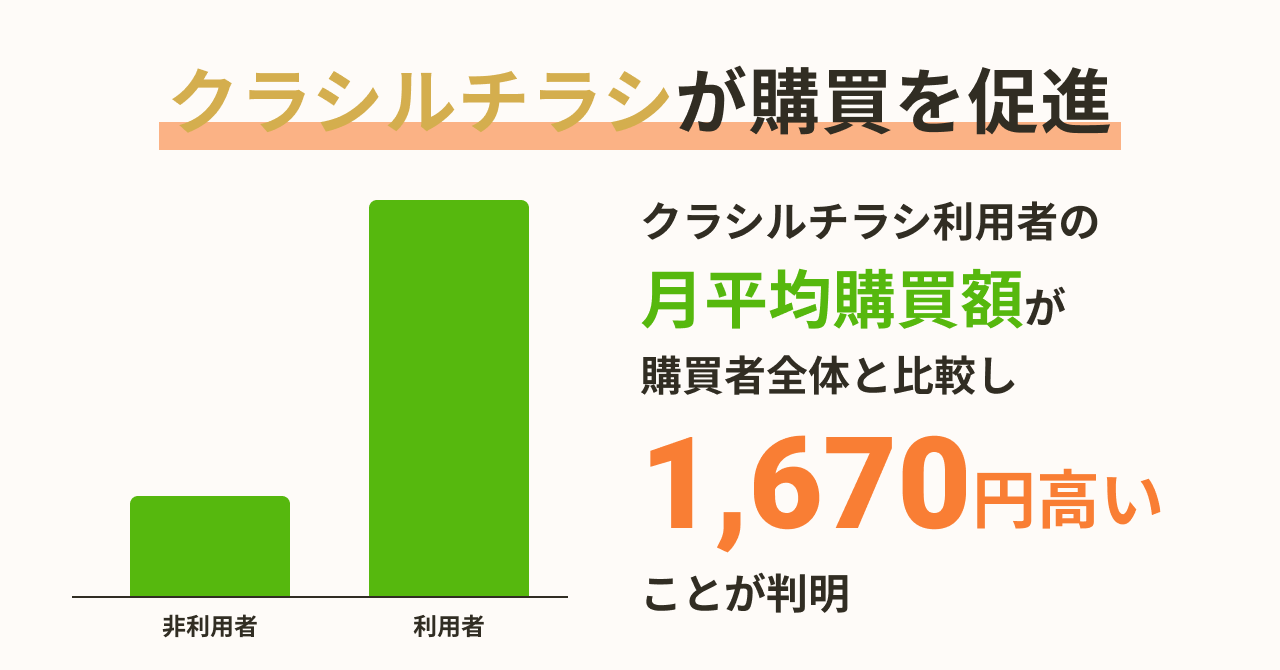【電子チラシが購買を促進】「クラシルチラシ」利用者の月平均購買額が、購買者全体と比較して1,670円高いことが判明