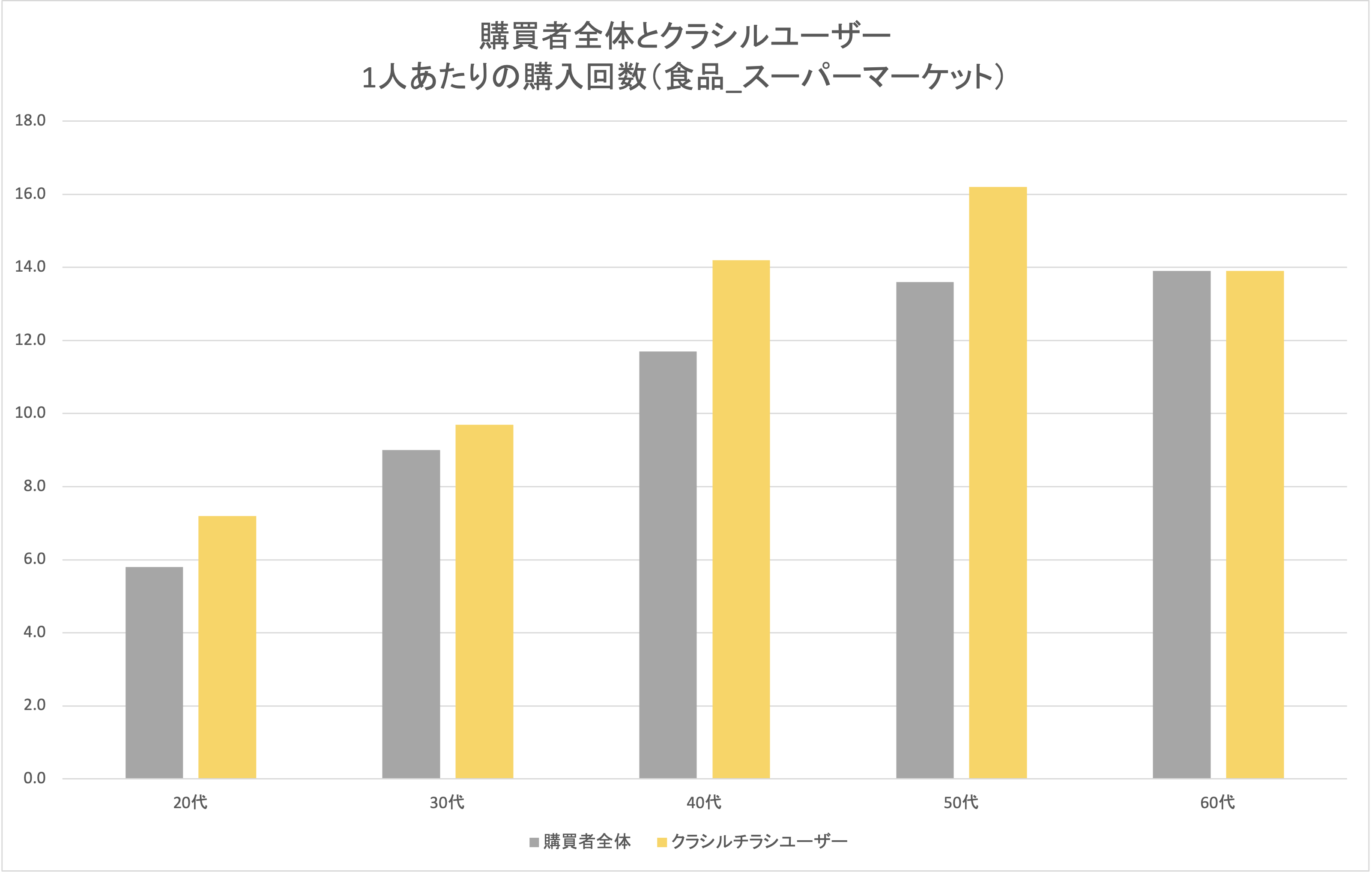 ・購買回数においては60代以外の全年代で一般消費者よりも多く、スーパーマーケットに来店する頻度も高い