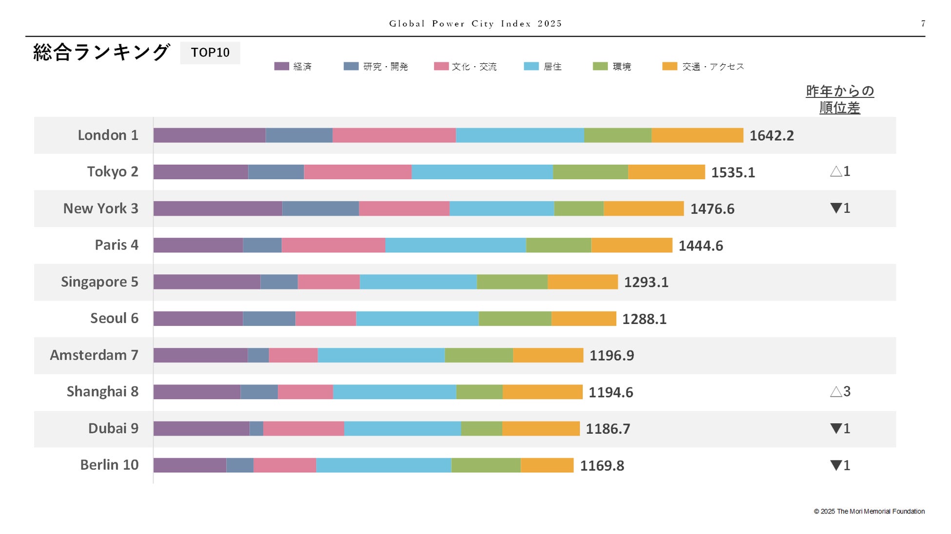 市川所長:よろしくお願いします。今年の大きなニュースは、先日(2025年12月17日)発表された「2025年世界都市ランキング」(森記念財団 都市戦略研究所)において東京が初めて2位に上昇したことです。従来はロンドン、ニューヨーク、東京の順でしたが、今回はニューヨークを抜きました。