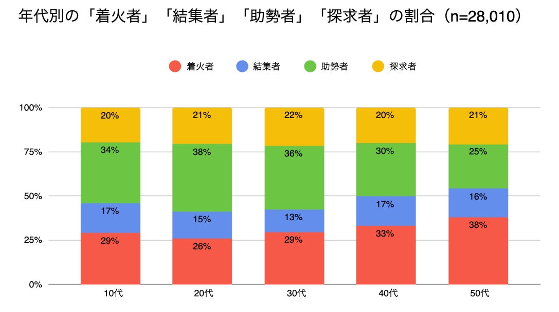 (※1… 性格診断のすべての設問に回答が完了しており、かつWantedlyに年齢情報を登録している28,010人分のデータ)