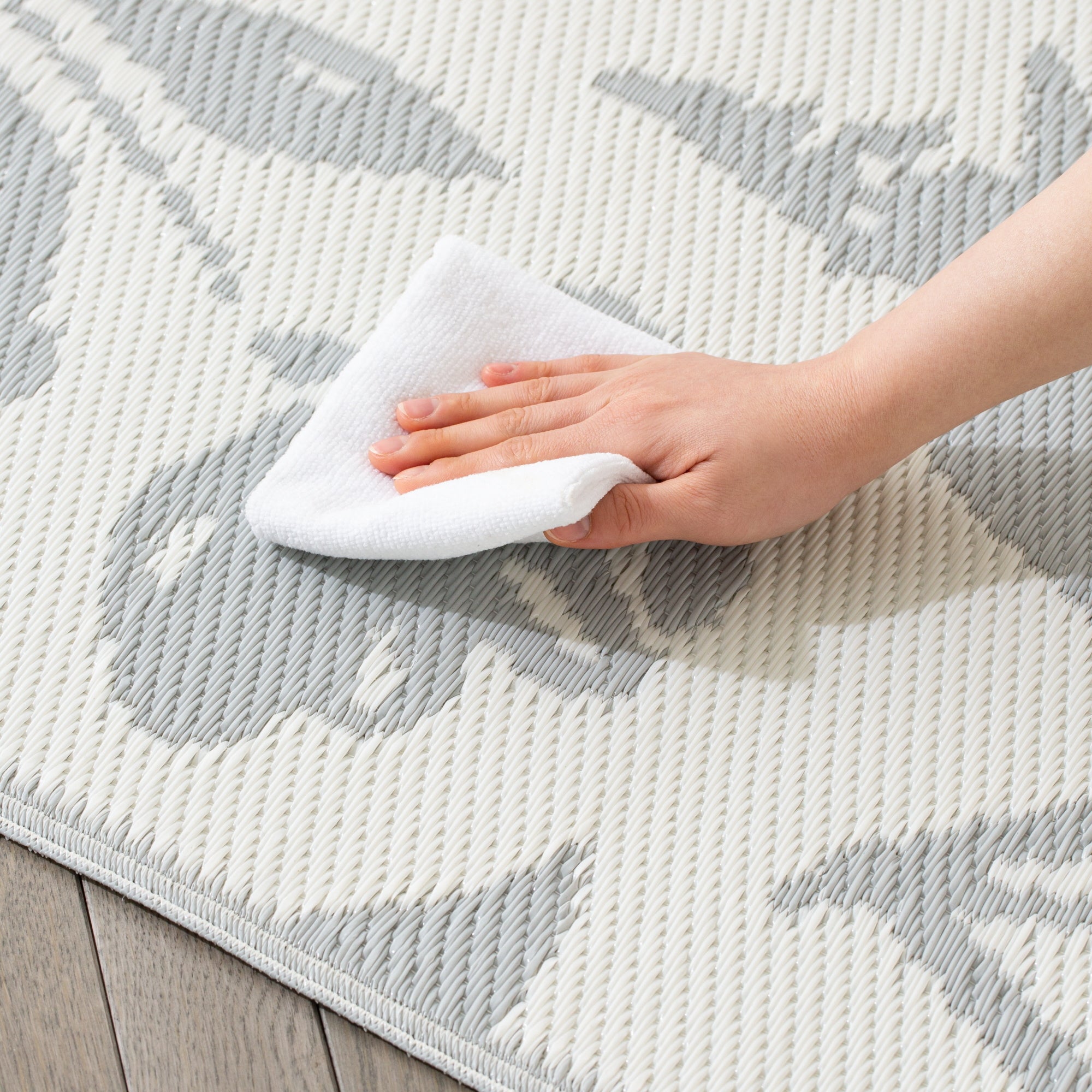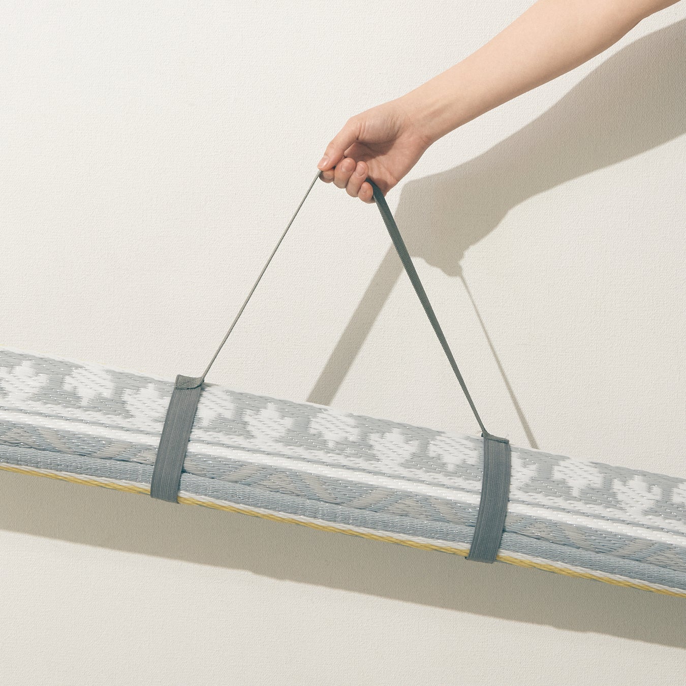 屋外だけでなく、室内ラグとしても夏らしいコーディネートをお楽しみいただけます。また、汚れてもサッと拭き取れるので子供部屋や夏の模様替えラグとしてもおすすめです。持ち手付きのバンドが付いているので持ち運びも簡単です。